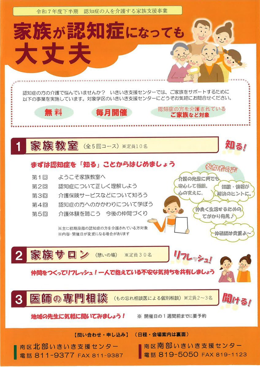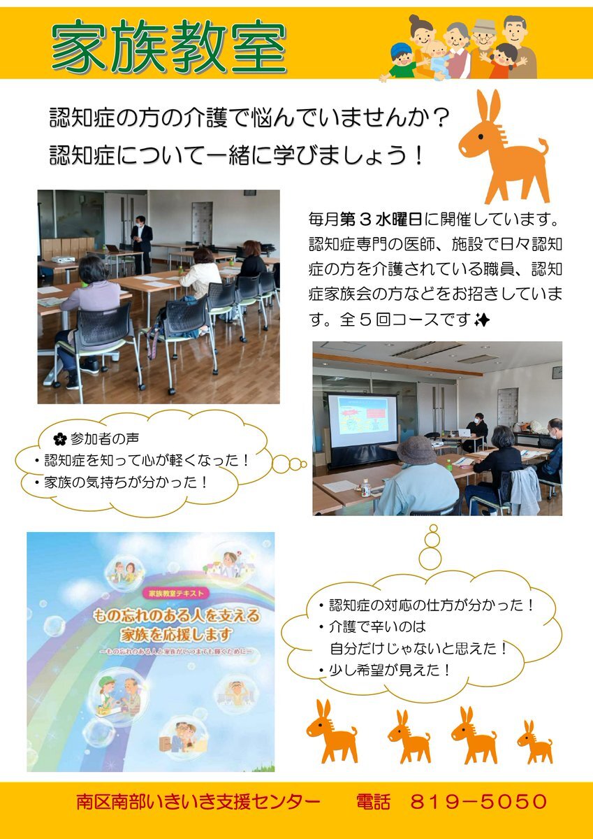 12月家族教室のご案内🎄 第3回の今回は、いきいき支援センター職員から介護にかかる制度についてお話しする予定です🤲 🗓️12月17日(水)13:30~ 📍南区役所4階 お申込みは南区南部いきいき支援センターまで🙆‍♀️ #認知症 #家族教室 pic.x.com/VrZLWqidR3