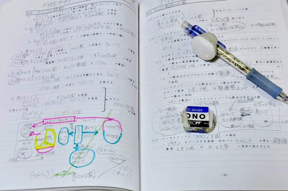 下の写真は、世界史20話プロジェクトの「書き込みノート」と大人のやる気ペン、私と一緒に歴戦の資格試験を戦ってきたMONOの消しゴム←捨てられないのよね。 #歴史能力検定 pic.x.com/7EkHcvGssQ