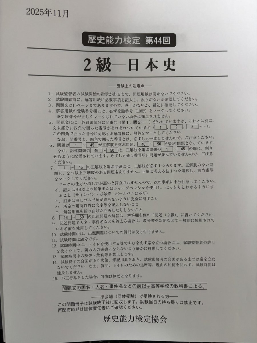 #歴史能力検定 日本史2級を受験してきました。 自己採点したところ、正解37問/50問。 おそらく合格ですかね。 来年は #全国通訳案内士 挑戦できれば。 #歴検 pic.x.com/bxnYFrAc98