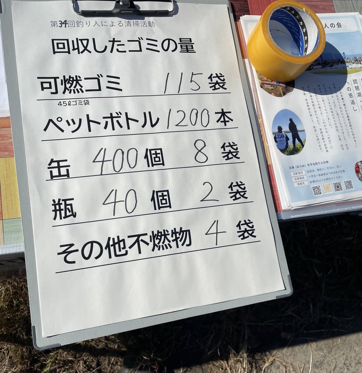 今日は夏以来の琵琶湖清掃活動参加。 集合場所から少し離れたエリアへ移動し、短時間にもかかわらずイカつい量を回収(ペットボトルはなんと3000本!)。参加した皆様お疲れ様でした。来年も都合つけて参加します。#釣り人による清掃活動 #淡海を守る釣り人の会 pic.x.com/GSUzyWQ5WG