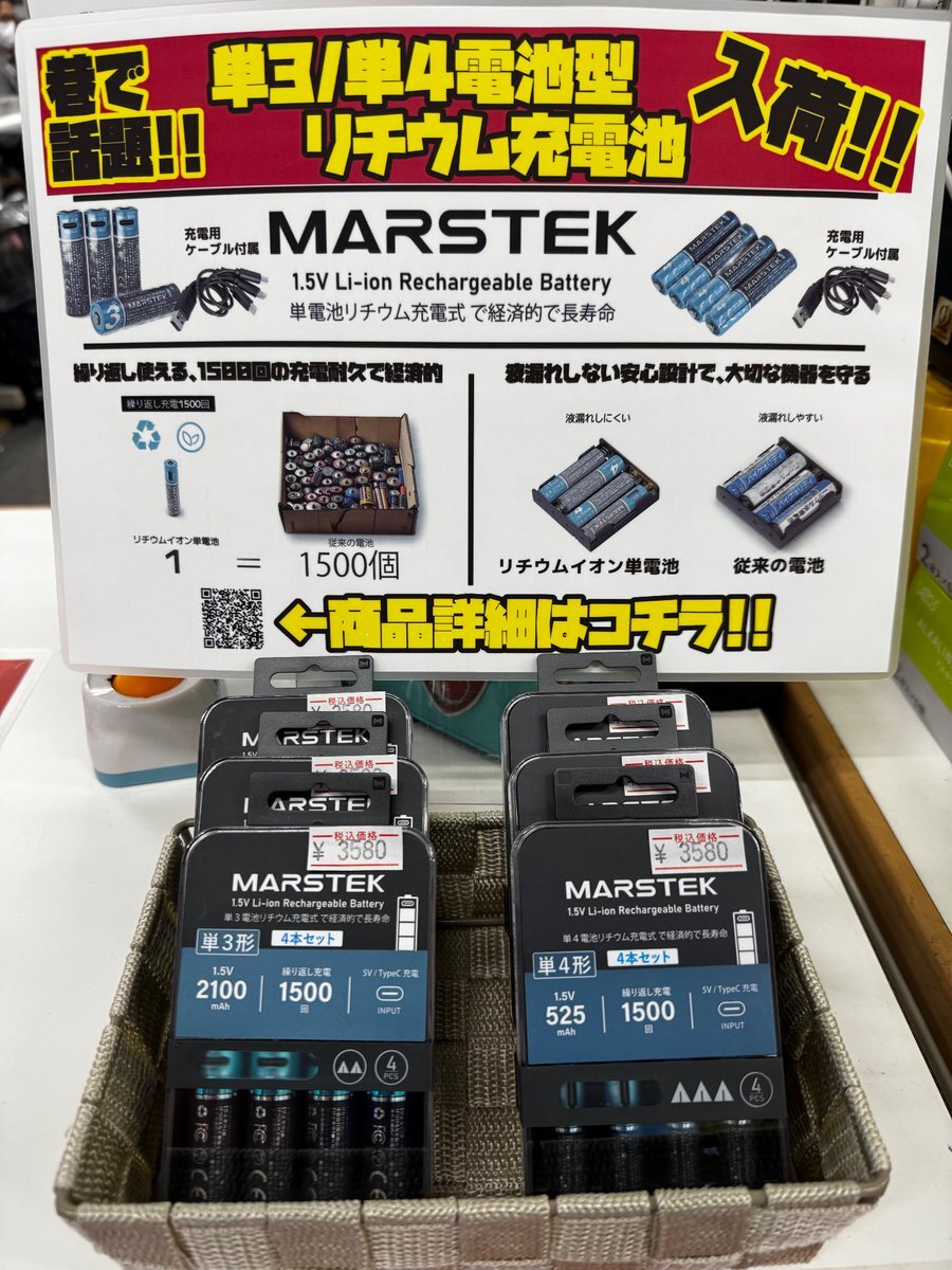 #せっきー調査団🉐】 ◤◢⚡新商品入荷⚡◣◥ #MARSTEK 単3/単4形 リチウムイオン #充電池 ☑充電用ケーブル付属👍 ➡ご注文はコチラ💁 単3形🔋 at-mac.com/view/item/0000… 単4形🔋 at-mac.com/view/item/0000… ※通販購入は別途送料がかかります🙇‍♂️ 【せっきー。🐺】 #パソコンショップDOMU #AREA pic.x.com/wHpnH5gHFk
