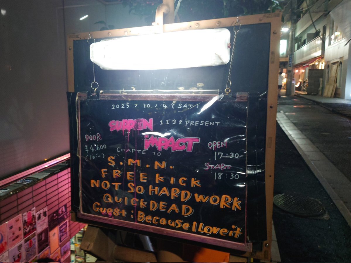 夜は毎年楽しみにしてるイベントへ! 1138 PRESENT SUDDEN IMPACT Chapter 10 1138のカッコ良いバンドが勢揃いしてバンドもお客さんもワイワイしてるこの雰囲気が楽しくて今日もHAPPY TONIGHT! S.M.N.のセトリが粋なセトリで熱かった🔥 #FREEKICK #NOTSOHARDWORK #BecauseILoveIt #QUICKDEAD #SMN pic.x.com/ziJMJ1oC8w