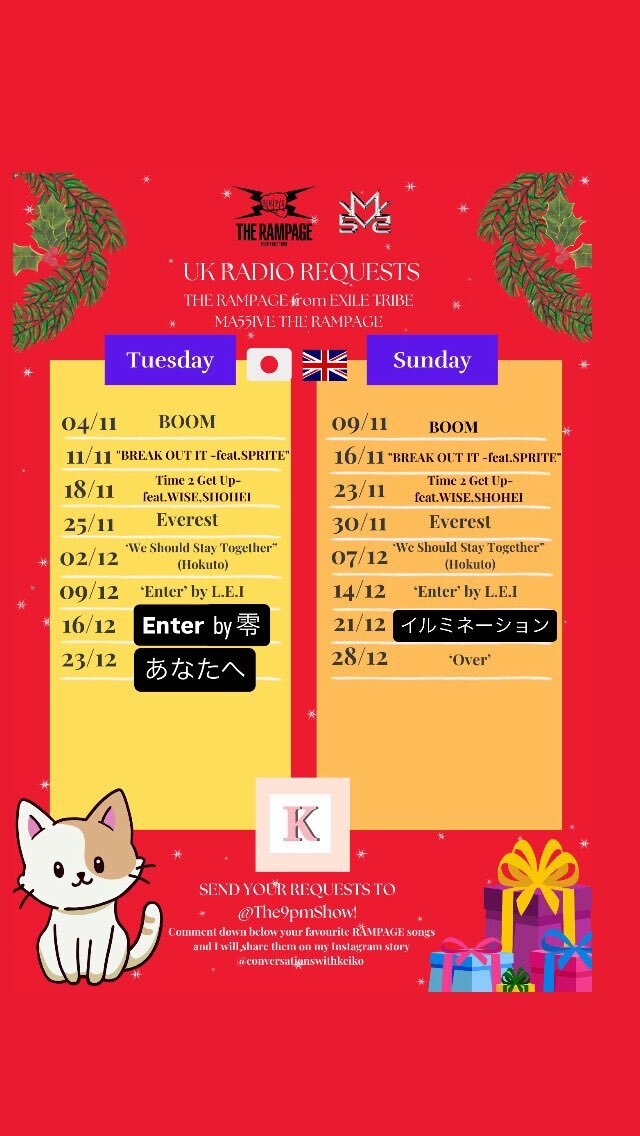 🇬🇧📻今朝は #RIKU #TIM が流れました👏リクエストありがとうございました🍀 1回飛んで次回は12/17(水) 🇬🇧ブロガーさんスケジュール⬇️から # #Enter をリクエスト🙏 👇🏻リクエスト&視聴 ecaradio.org 新曲リリース、お休み、Xmasの為⬇️予定を変更してます🙏 @RIKU1994810 @sncrmpg_kk pic.x.com/sZNAq4Kcyz
