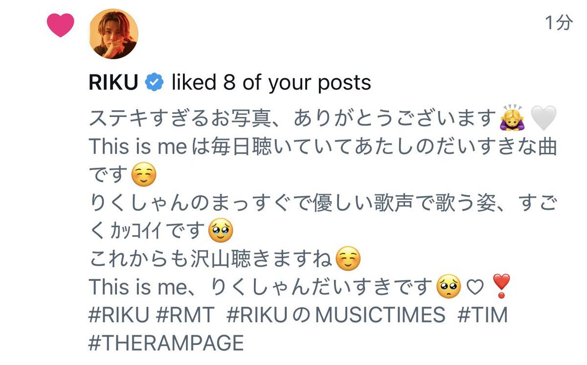 りくしゃん、ありがとう( ˶°⌓°˶)➰🎀🤍 りくしゃん、優しすぎてすき😖ྀི🤍 お仕事とかで、大変なことや疲れたことがあっても、This is me聴いたりりくしゃんの歌声を聴くと、すごく癒されます🥺♡♡ りくしゃん、ダイスキ...😢♡♡ #RIKU #TIM #RMT #RIKUのMUSICTIMES #THERAMPAGE @RIKU1994810 pic.x.com/EkrPYU1cHL