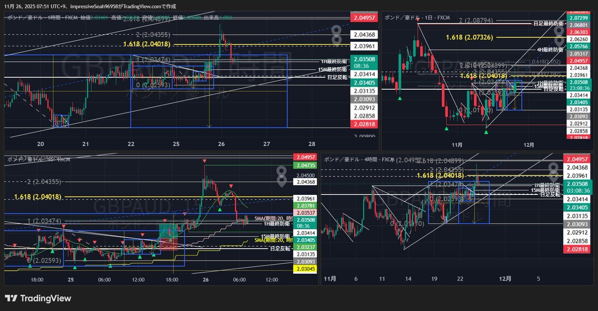 GBP/AUD 転換WB ・日足FR78.6 ・日足押し安値 ・日足高値切上げ ・1H高安値切上げ ・短期高安値切上げ ・WinW 1本目 1:1 2本目 FR1.618+1H転換 3:36 #W手法 #dd手法 pic.x.com/gzes1JQDIP