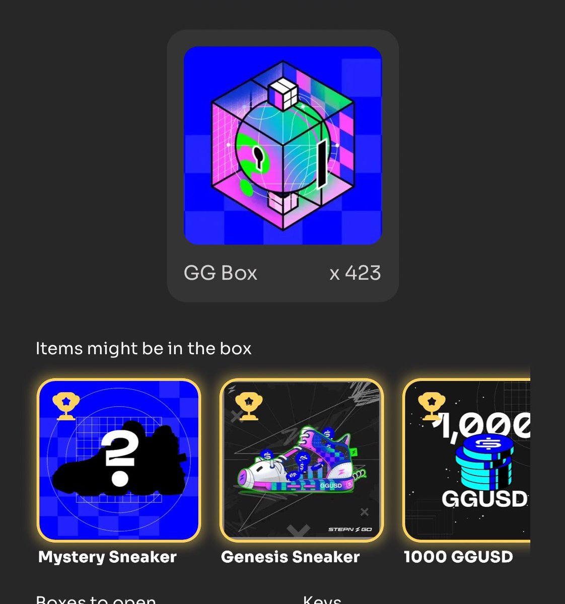 今週のGGBOX🎁 ありがたい事に今週も1000 GGUSD が出てくれました🤩 コモンスニーカーがどんどん増えていく😂 #GGBOX #FSL #STEPN pic.x.com/nIMCVKaXux