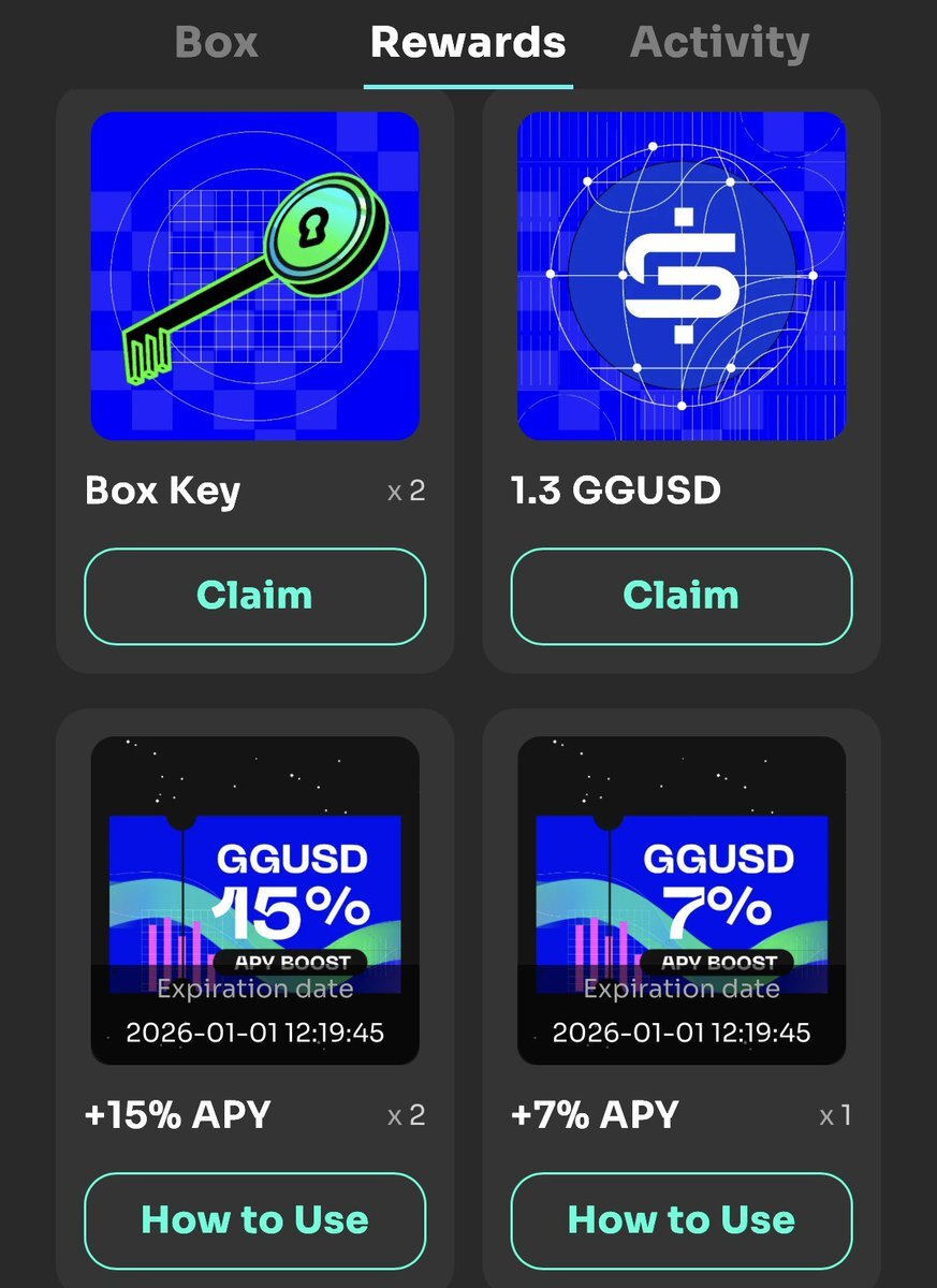 毎週のマラソン🎁開封! Marathon Box 04 1.3 GGUSD APY 37 (15×2、7×1) 🔑×2 9つ開封して🔑=1として10.3くらいなので+1.3...プラス!? 🎁×43 収支-5.8 GGUSD トータルのマイナスがほんの少しだけ改善です😆 #FSL #MarathonBox pic.x.com/m9ODbjdR67