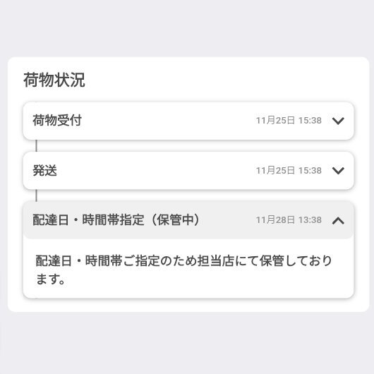 #Steelcase #Gesture 30%引きで買ったけど11/19に注文してから届くのが12/1らしい アートセッティングデリバリーとか言うのが発送から配達まで7日かかるのがなぁ 千葉から関東ってそんなにかかるものなのか?と思ったが 在庫がある場合の配送が7-10営業日の時点で9日-14日目安だもんな 13日は範囲内か pic.x.com/9cWbH6Q26R x.com/SteelcaseJP/st…