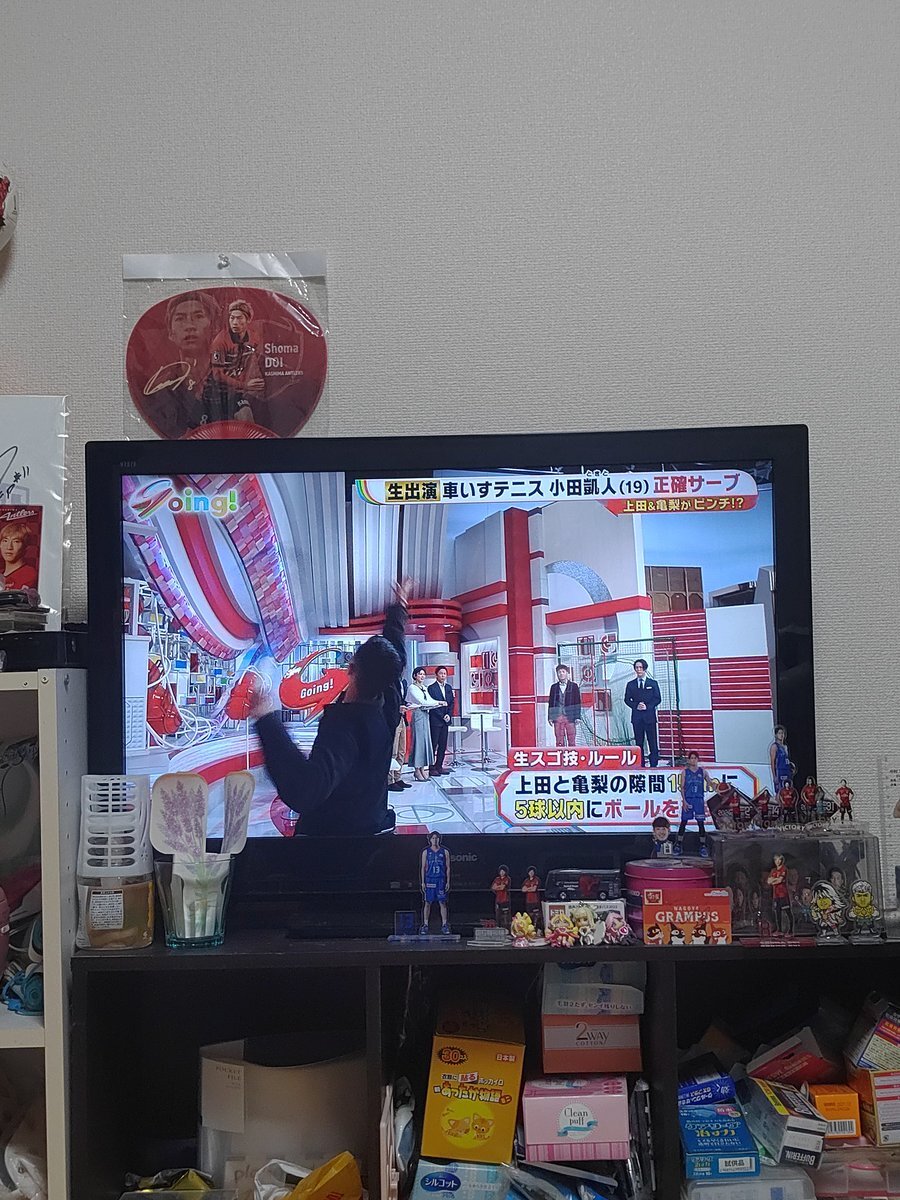 小田 凱人選手の1回目の サーブにびっくり仰天の亀ちゃんが可愛い"(∩>ω<∩)" 手までも可愛い♡ お宝映像だわꉂ🤭 #Going #ゴーイング #亀梨和也 亀梨くん pic.x.com/01FVrozwgD