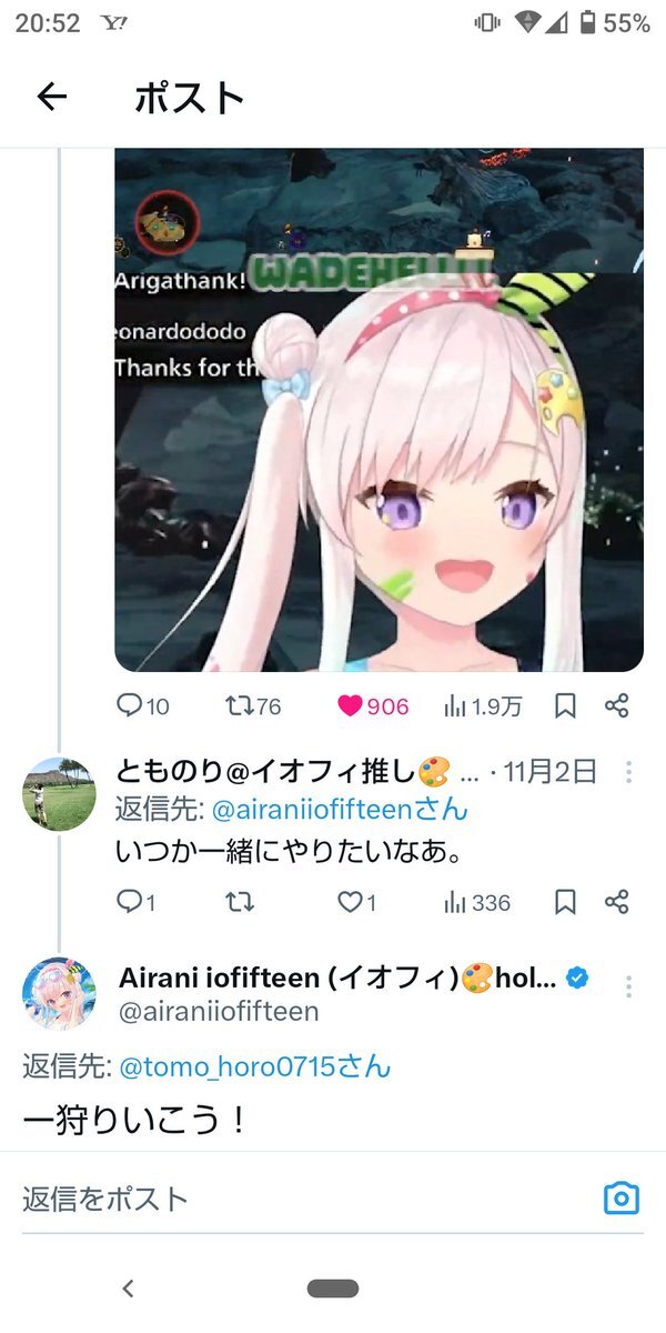 イオフィ~と一狩りしてきました🎨 約束どおり一緒に狩れて嬉しかったです☺️✨ また一狩りいこう🎶 #ioLyfe pic.x.com/DTKRk04f1w