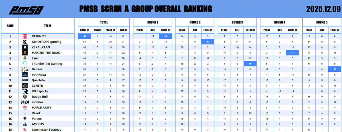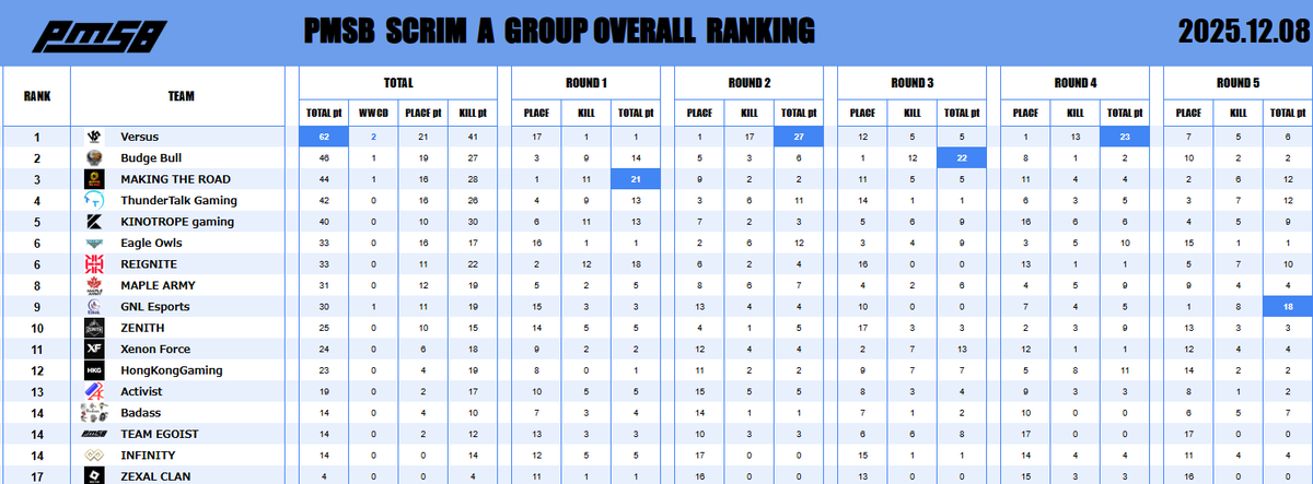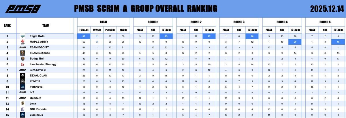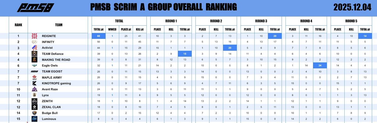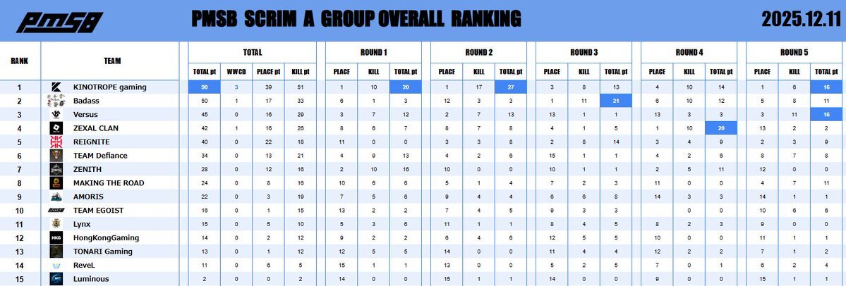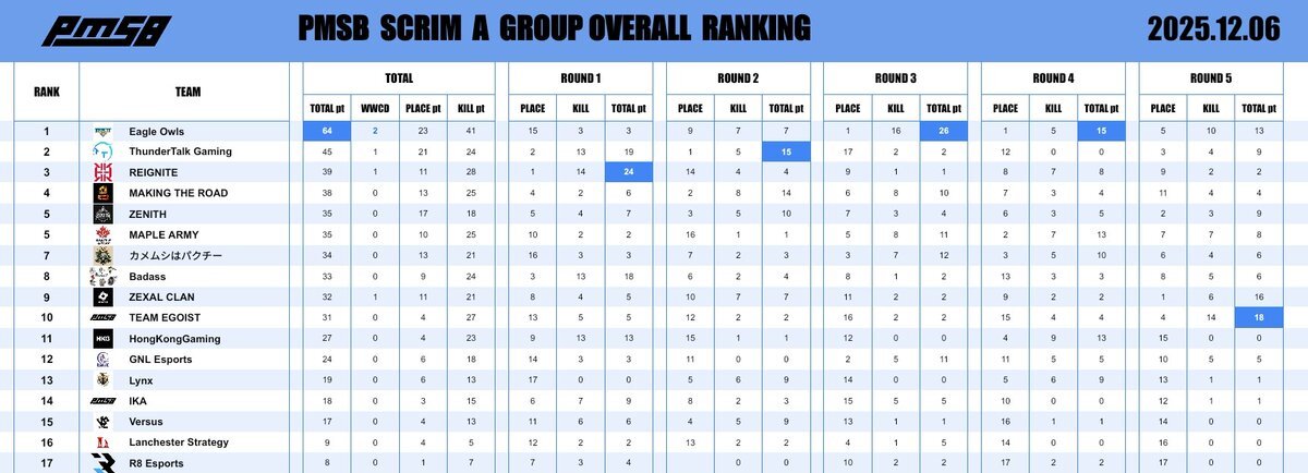 📅 2025.12.03 🔥 PMSB SCRIM|RESULTS 📊 ━━━━━━━━━━━━━━━━━━ 本日の結果はこちら✨ おつかれさまでした☕ ━━━━━━━━━━━━━━━━━━ #PMSB #PMOT #PMJL pic.x.com/4MU9pPTpvr