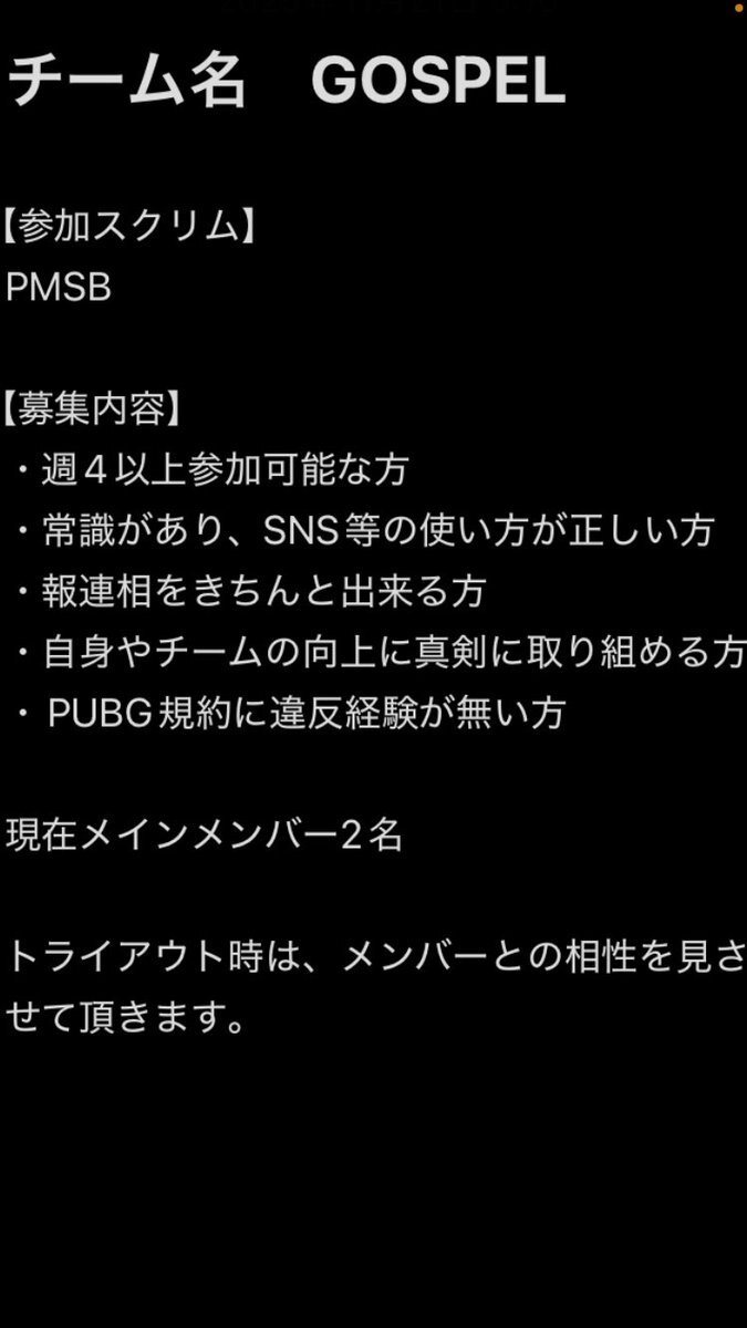 次回PMOTに向けて、チームを新規結成しましたので、スマホ選手の方を募集します。 現在メンバーは2名の為、2〜3名の募集になります。 興味のある方は、DMまで宜しくお願い致します🙇 #PMOT #PUBGモバイル #PMSB #スクリム pic.x.com/wyA3PFBf58
