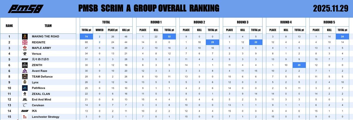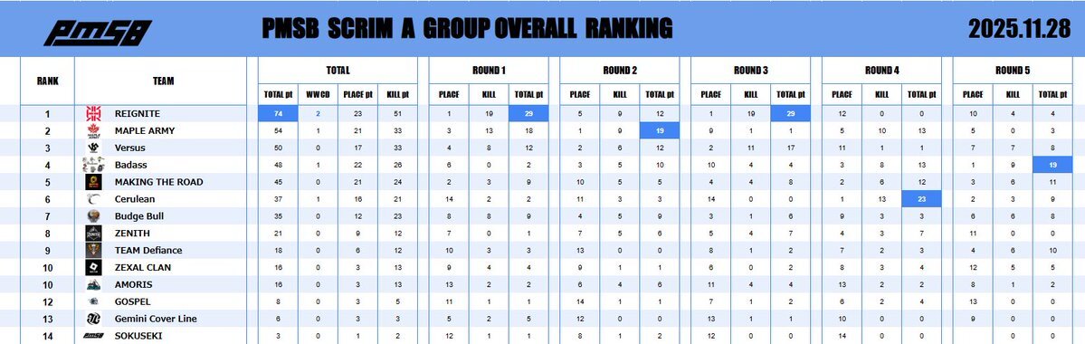 📅 2025.11.28 🔥 PMSB SCRIM|RESULTS 📊 ━━━━━━━━━━━━━━━━━━ 本日の結果はこちら✨ おつかれさまでした☕ ━━━━━━━━━━━━━━━━━━ #PMSB #PMOT #PMJL pic.x.com/h2w4TsgbP5 x.com/_PMSB_/status/…
