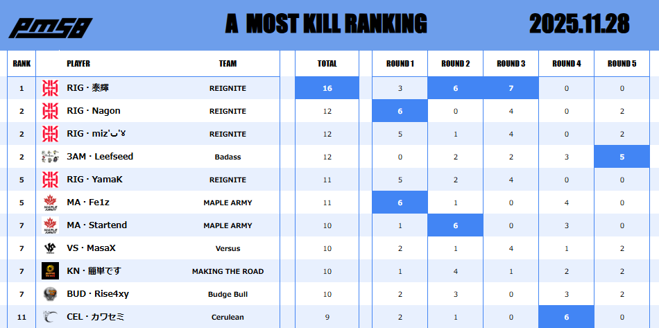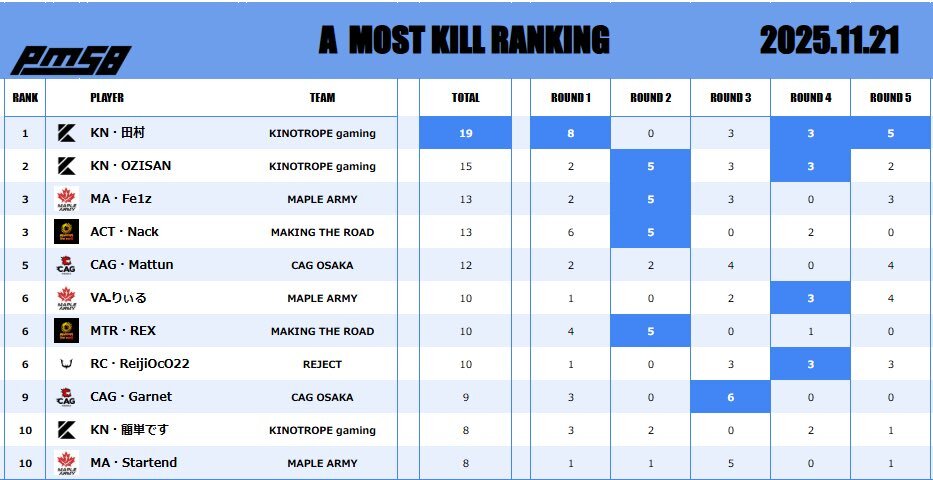 2025.11.21 PMSB SCRIM 🔫 本日の結果はこちら︎︎︎🌟 おつかれさまでした︎︎❣️ #PMSB #PMOT #PMJL pic.x.com/vOlDHpa7oK