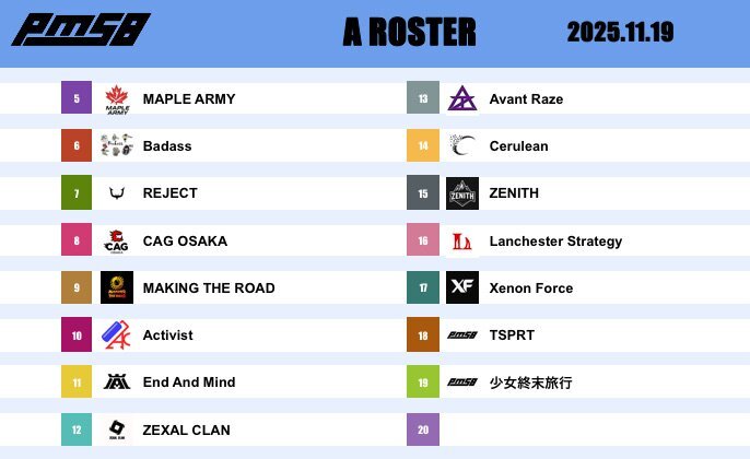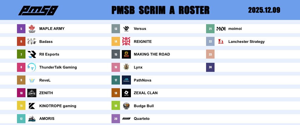📅 2025.11.29 🔥 PMSB SCRIM|TODAY’S ROSTER 🔫 ━━━━━━━━━━━━━━━━━━ 🎙️ CASTER / 実況 ➡️ さとる先生(@gojo3po) 📺 STREAM / 配信チャンネル ➡️ youtube.com/@_pmsb_?si=vLn… ━━━━━━━━━━━━━━━━━━ #PMSB #PMOT #PMJL