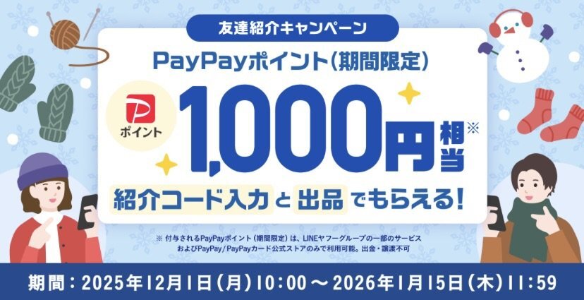 Yahoo!フリマがお得✨️ / paypayポイント期間限定 1️⃣0️⃣0️⃣0️⃣円分pt付与 \ ✔参加方法 ➊Yahooフリマアプリをダウンロード ➋paypay連携 ➌Yahooフリマ招待コード入力 ➍出品をキャンペーン期間内に完了 ※画像も確認 ✔Yahooフリマ紹介コード →【 CAST4L 】 2025.12.16 #PR pic.x.com/yVt7S6phGe