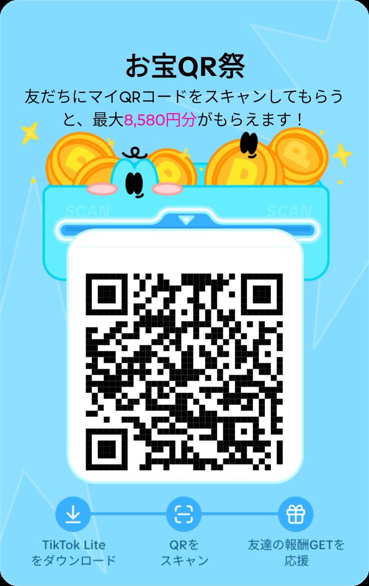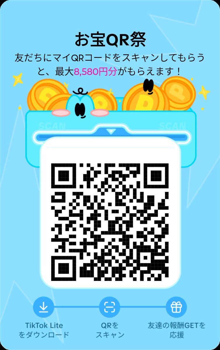 #PR #TikTokLite #お宝QR祭 QRコードスキャンまたは下記のリンクから進むと最大13,580円分の報酬がもらえます!🪙✨ 新規ユーザー 8,580円分 30日以上アプリ使用していない 660円分 今日アプリを使っていない 10円分 既存ユーザー 5P [期間]12月16日 16:59まで lite.tiktok.com/t/ZSHwtWaDfyEu… pic.x.com/WLBb5XN2GY