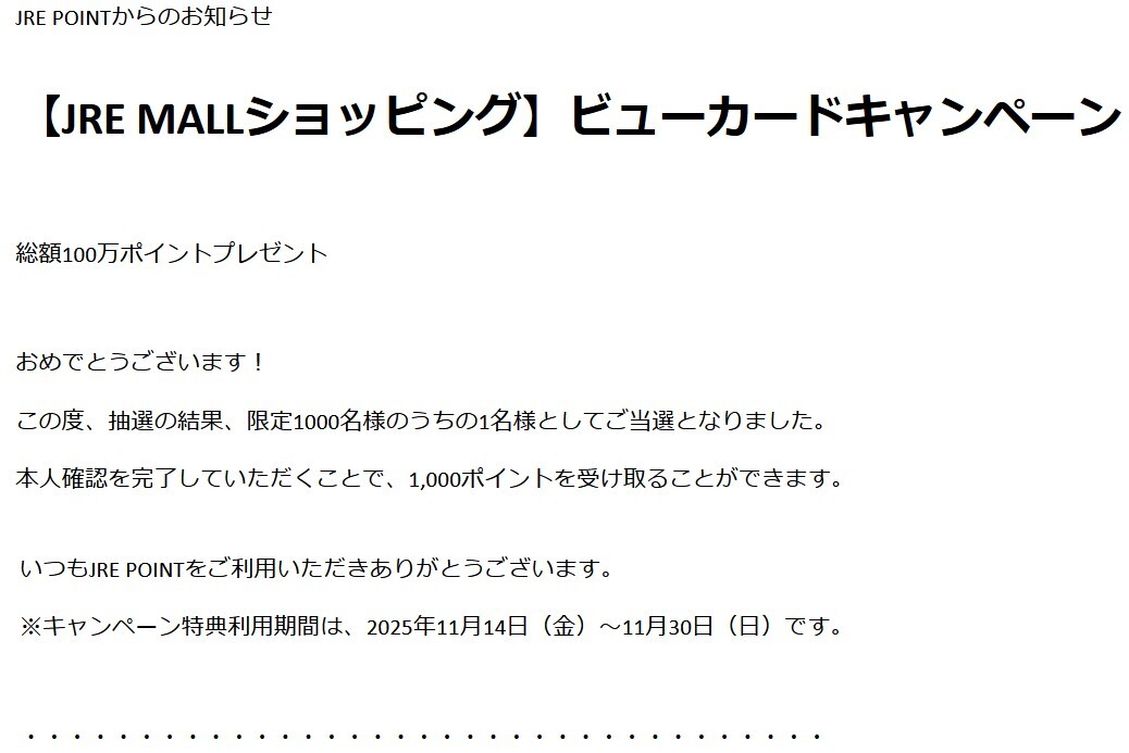 下記は詐欺 気を付けて! JRE POINT事務局 <questions@knshow.com> 「JRE POINT」おめでとうございます!抽選当選!1,000ポイントをプレゼントいたします #詐欺メール #フィッシングメール #迷惑メール #JRE POINT事務局 #questions@knshow.com #おめでとうございます!抽選当選!1,000ポ pic.x.com/Co6EDEOlMT