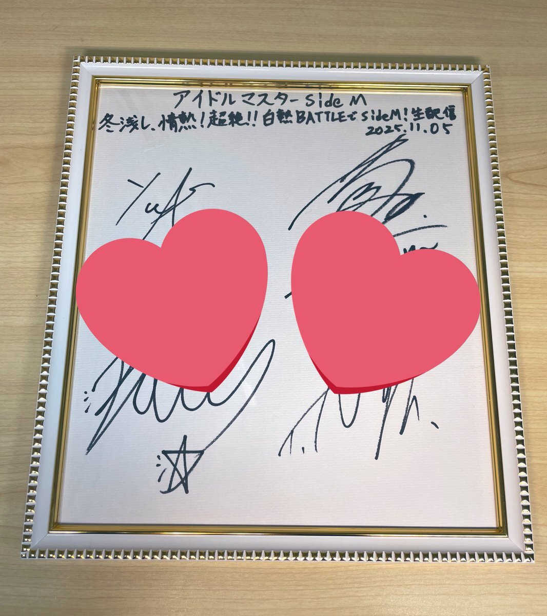 今回ご縁あってとんでもないものに当選しました㊗️ 幸せすぎる( ᵒ̴̷͈ ⌑ ᵒ̴̶̷͈ ) 早速額に入れました👍🏻🌟 (念のためサイン隠してます。あと、上の文字書いたの誰ですか…字の特定上手い方いませんか←) #SideM pic.x.com/uZ3bO4O1zP