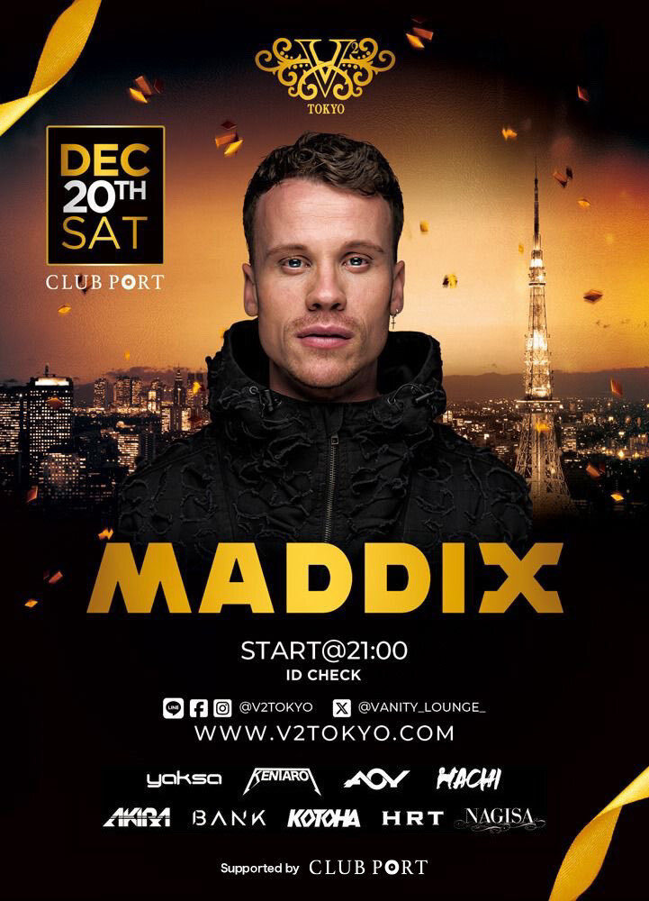 クラブポート編集部YUKOです‼️ 12月V2TOKYOにMADDIX登場🔥 100名限定で独占先行販売開始🤗 確実に入場できるプレミアチケットはコチラから👇 club-port.com/special/maddix… #maddix #v2 #v2tokyo #クラブ #クラブポート pic.x.com/Z2DEpO1yQm