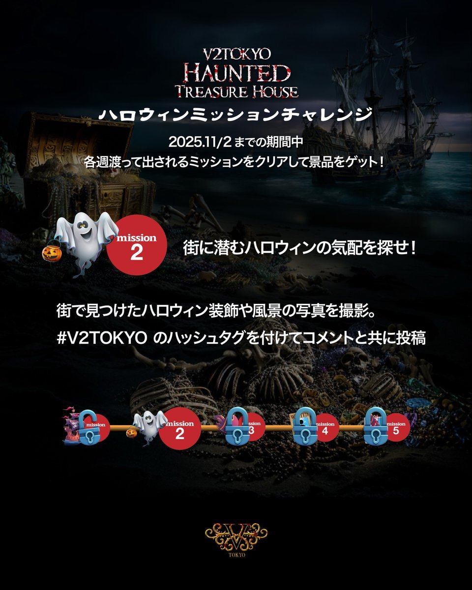 🎃ハロウィンミッションチャレンジ🎃 STEP2: 👻 【街に潜むハロウィンの気配を探せ!】 📸 参加方法 ① 街で見つけたハロウィン装飾や風景を撮影 ② 「#V2TOKYO」をつけてSNSに投稿 pic.x.com/01mgciHdor