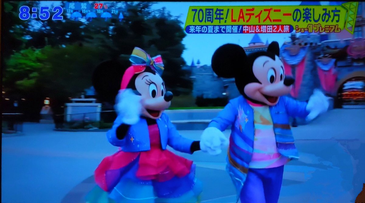 今日日曜TV『シューイチ』で70周年LAディズニーの特集がありました🏰 オラも数年前にカリフォルニアディズニーランドリゾートに旅した事があるので✈️懐かしくて涙チョチョ切れましたよ🍓(ToT)ミッキー達の70周年コスも可愛くて💕そして素敵ですね🌹(^^ゞ シューイチさんありがとうございました🙇♂️ pic.x.com/LlehDe10QK