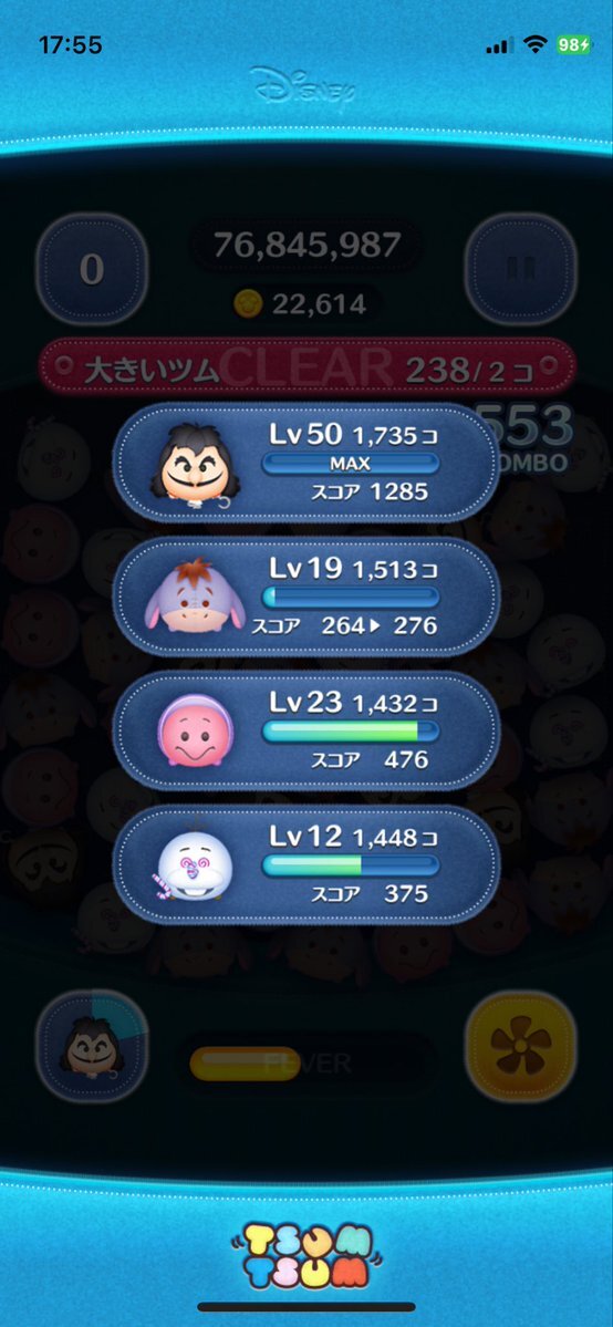 #ツムツム フック船長 やっとコイン稼ぎ出来るようになってきたかな🤔 盤面にフックが居ないとダメだけど消し方で期待値上げるしかないんだよね 1万までは行けるはずなのよ pic.x.com/dxSAioPj9R