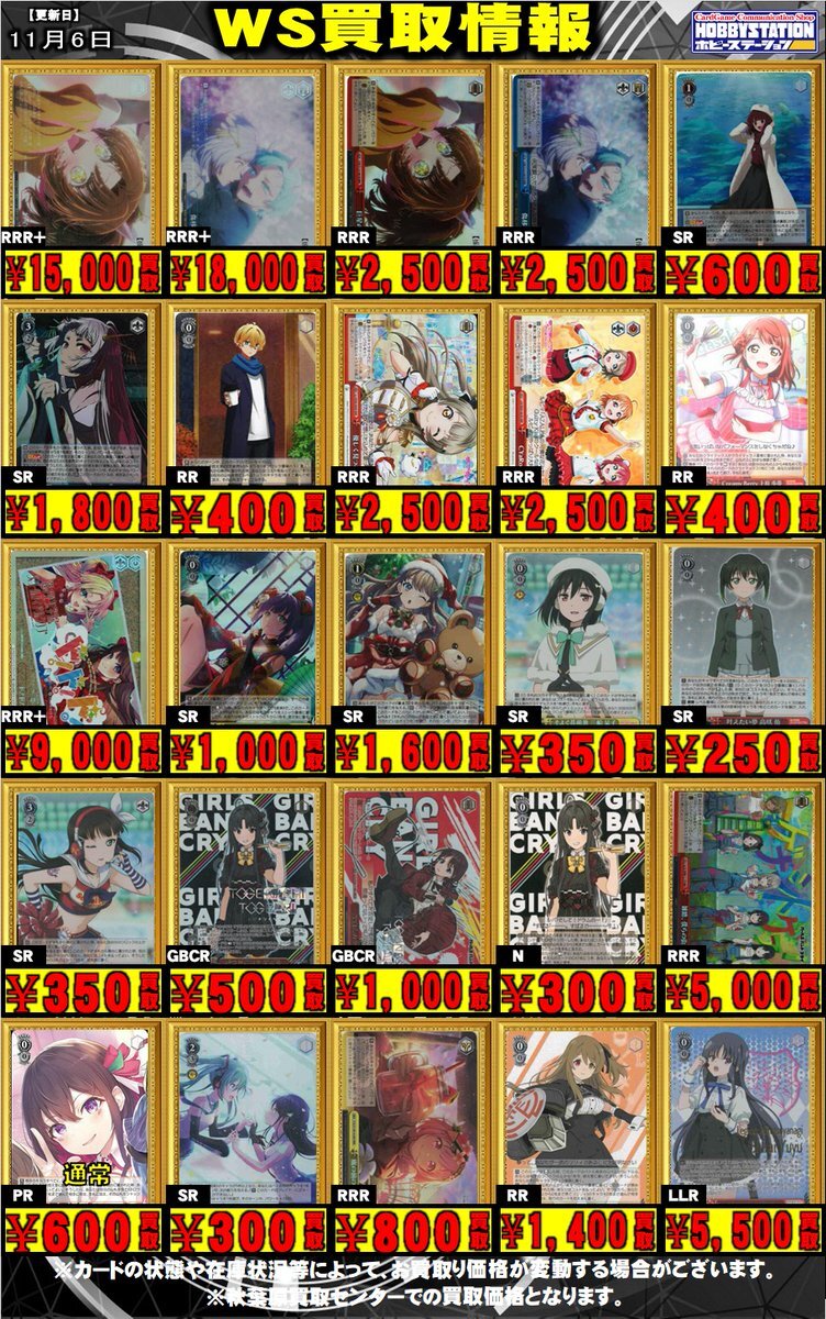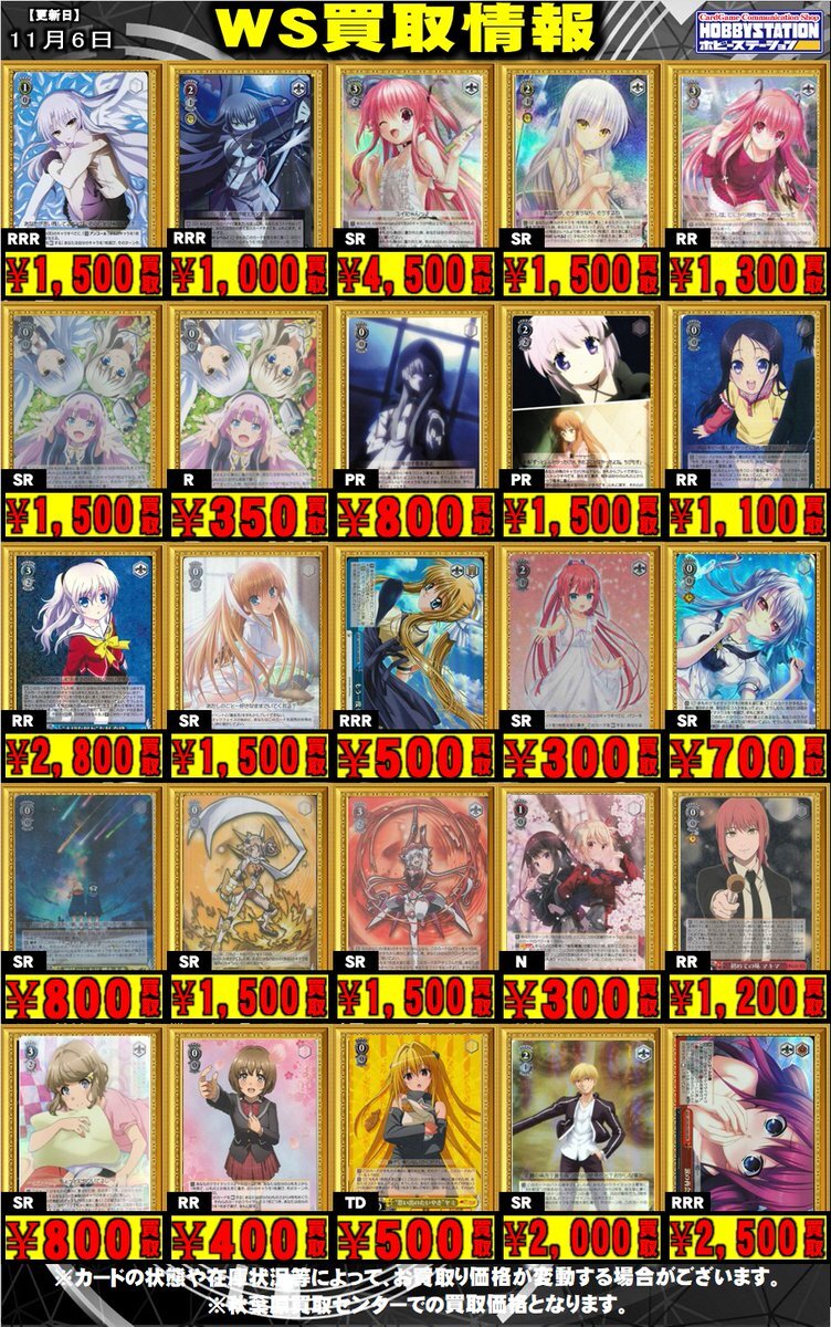 【#ヴァイスシュヴァルツ 買取情報】 対策委員会 セリカ SR1000 RR650 迷子のバンド 長崎そよ SR2100 RR450 Secret Christmas 藤島慈 SR1600 嘘つきの本音 すばる GBCR500 N300 一緒に歌おう! SR300 悪戯な笑み ユイ SR4500 RR1300 初めての味 マキマ RR1200 #ホビステ買取センターws pic.x.com/HPhWvwJE0J