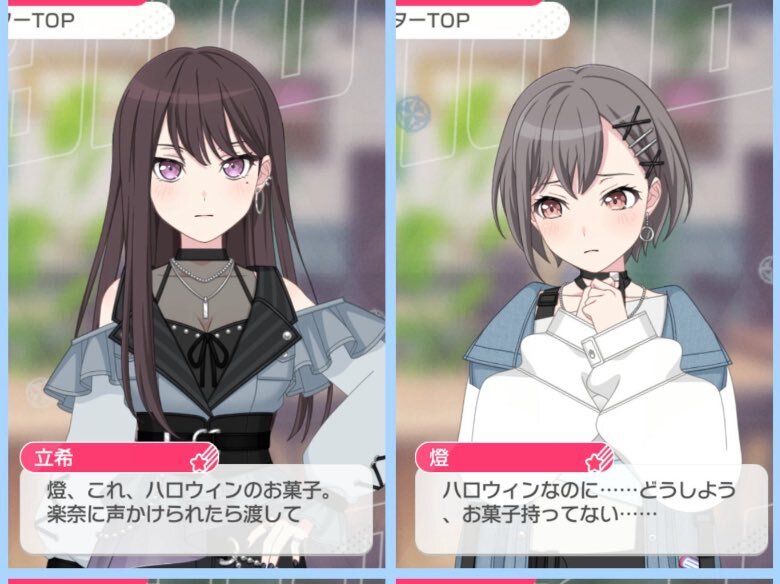 🌲「立希、ちゃん、どうしよう。お菓子無い、から、イタズラされちゃう、ね? チラッ 🐼「燈、これ、ハロウィンのお菓子 🌲「……………… この後長崎そよに軽く説教される立希ちゃん好き pic.x.com/VU29cI9AFf