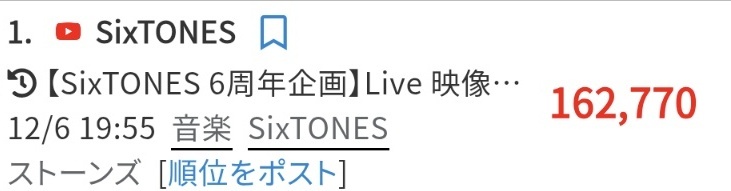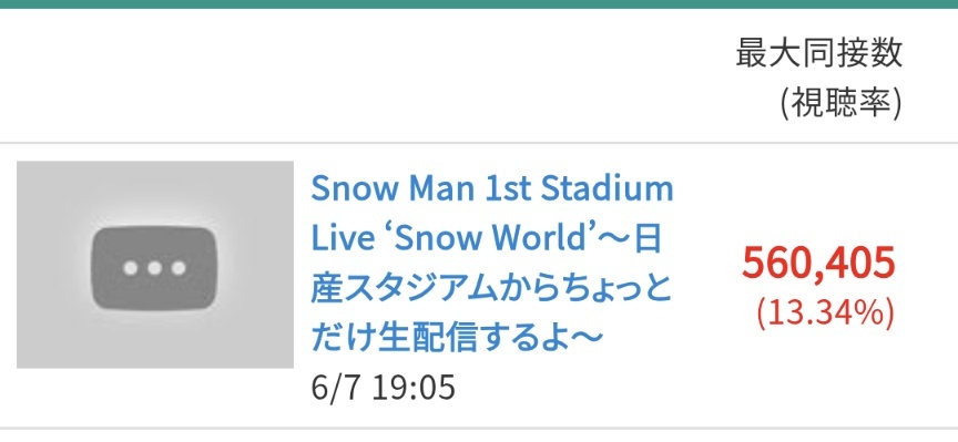 SixTONESの昨日の生配信最大同接数、1時間もやってんのに16万人しか見てなくて草。結局ガチファンそんだけね。ちなSnow Manの当日の昼に告知してちょっとだけやった6月の生配信の同接数も調べたらちゃんとエグかったです pic.x.com/ZBEVcZ1Idp