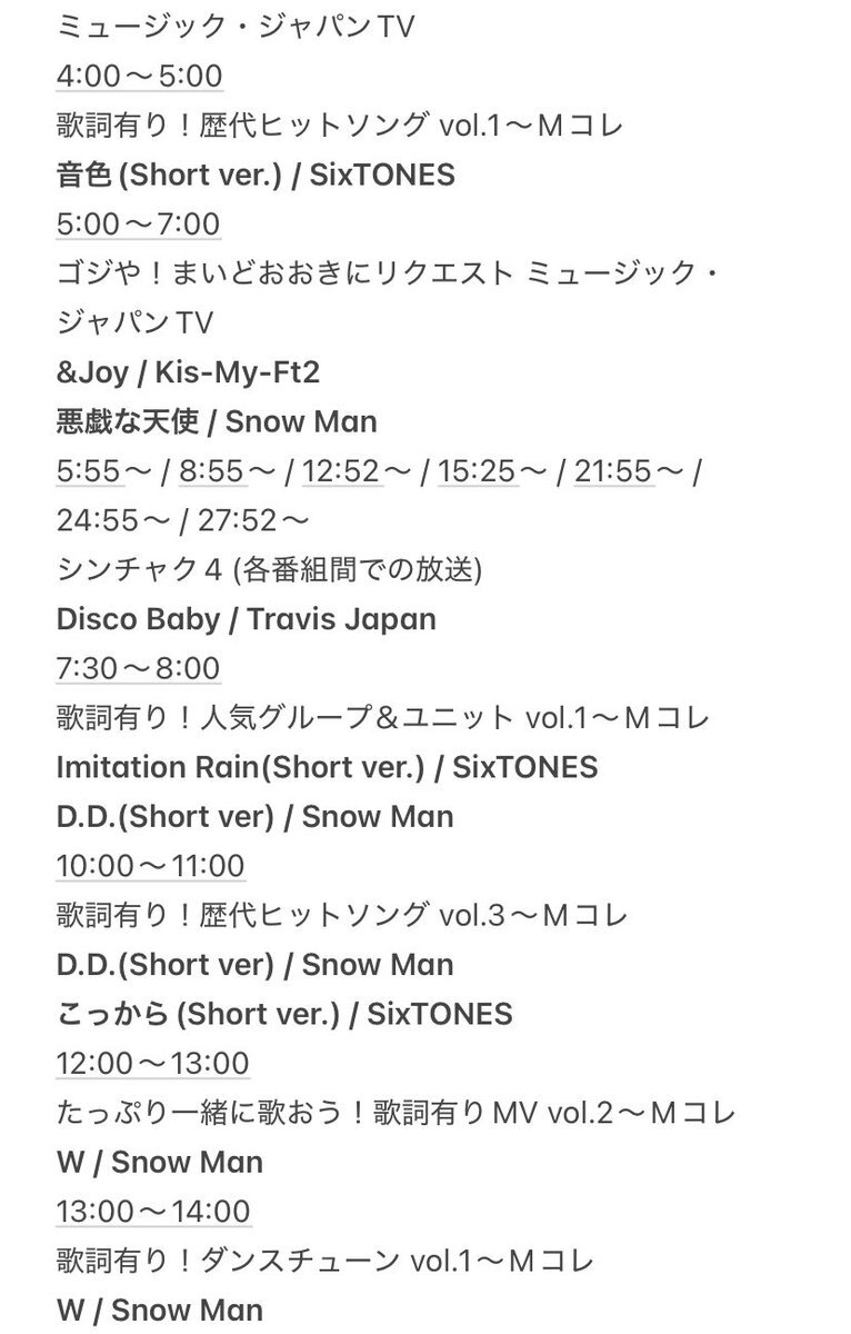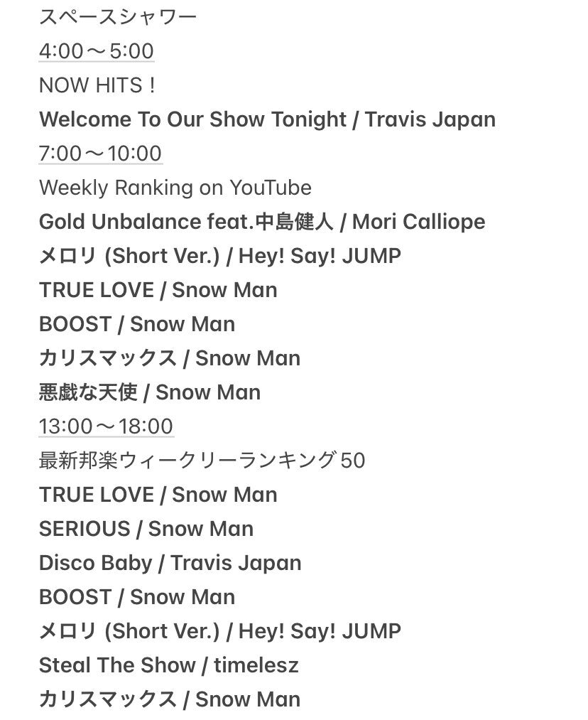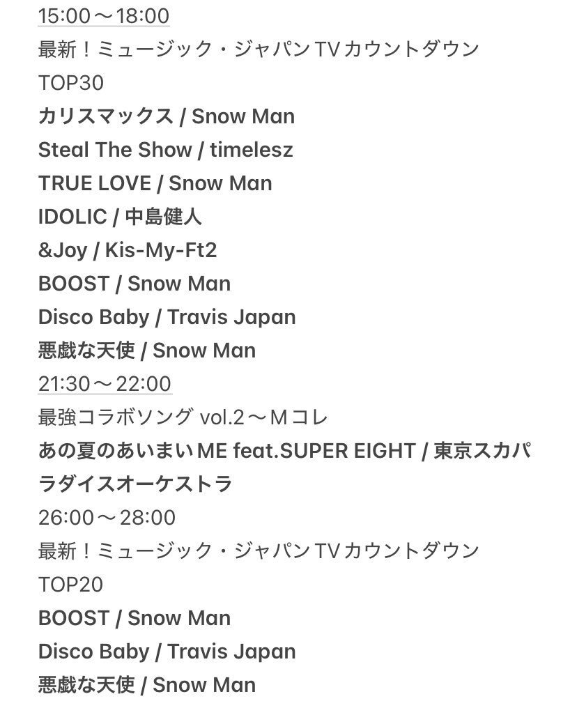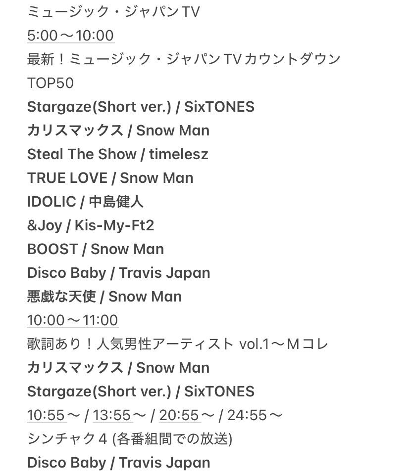 12/9 STARTO ENTERTAINMENTオンエア情報 ミュージック・ジャパンTV Snow Man MV特集(20:00) Travis Japan MV特集(21:00) #スペースシャワー #エムオン #ミュージックジャパンTV Travis Japan / 中島健人 / Hey! Say! JUMP / Snow Man / timelesz / SixTONES / Kis-My-Ft2 pic.x.com/bfcgtEmGBe