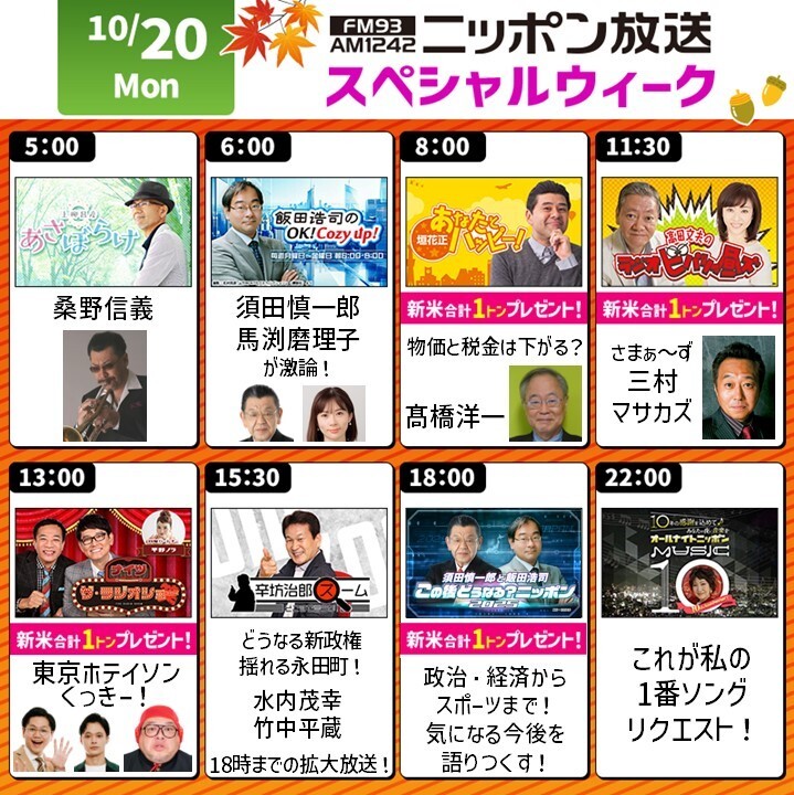 上柳昌彦 あさぼらけ ニッポン放送 2025/10/20(月) 05:00-06:00 radiko.jp/share/?t=20251… #radiko #ラジオ情報センター #あさぼらけ 今週はSPW恒例「ウルトラヒットの道標」今週はクワマンこと桑野信義さんが登場! @yakisoba_kaoru @doctor_n_drn @TEK_NO3