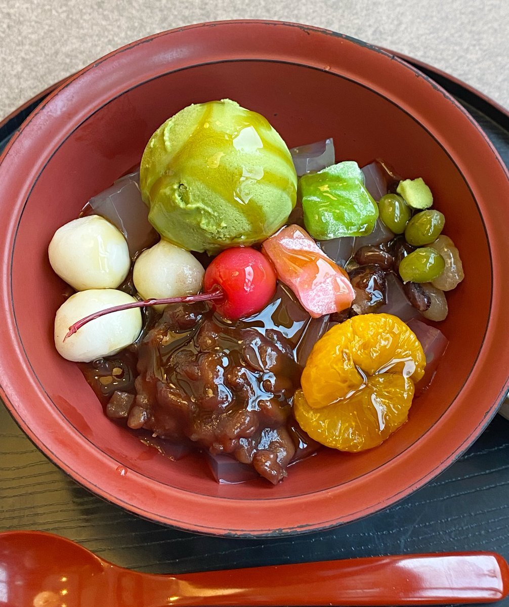 今日のおやつは、 かんながらの抹茶あんみつだっちゃ! 見た目が良くて綺麗だっちゃね! 美味しいのでおすすめだっちゃ! #イオン #イオンシネマ #石巻 #蛇田 #かんながら #今日のおやつ #和菓子 #抹茶アイス #抹茶あんみつ #あんみつ #求肥 #寒天 #あずき #さくらんぼ #白玉 #みかん #黒蜜 pic.x.com/sPmDfBTRQ8