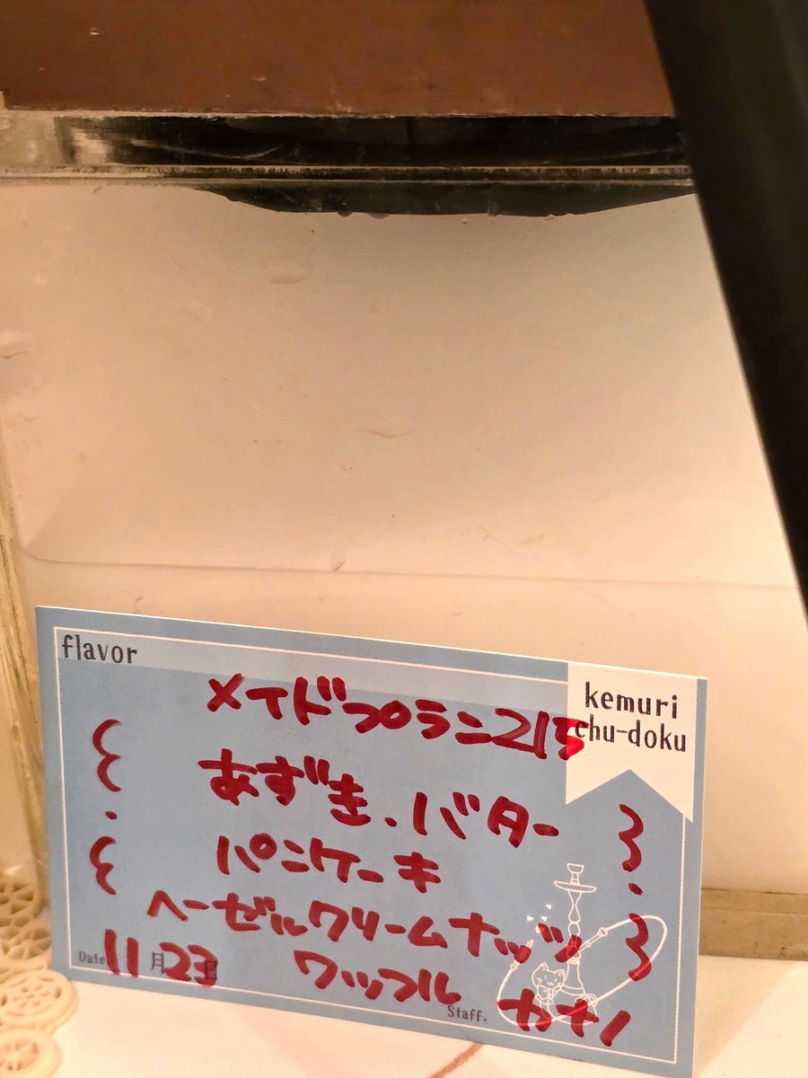 今日も来ています。215回目。 今日は前話していた和菓子風Mixを作ってもらいました。 #あずき#バター の香りと #パンケーキ の風味に #ヘーゼルクリームナッツワッフル が効いた、いいお店のどら焼きみたいな美味シーシャでした。 #秋葉原 #シーシャ #メイドシーシャ #けむりちゅーどく pic.x.com/I2yw60bGKy