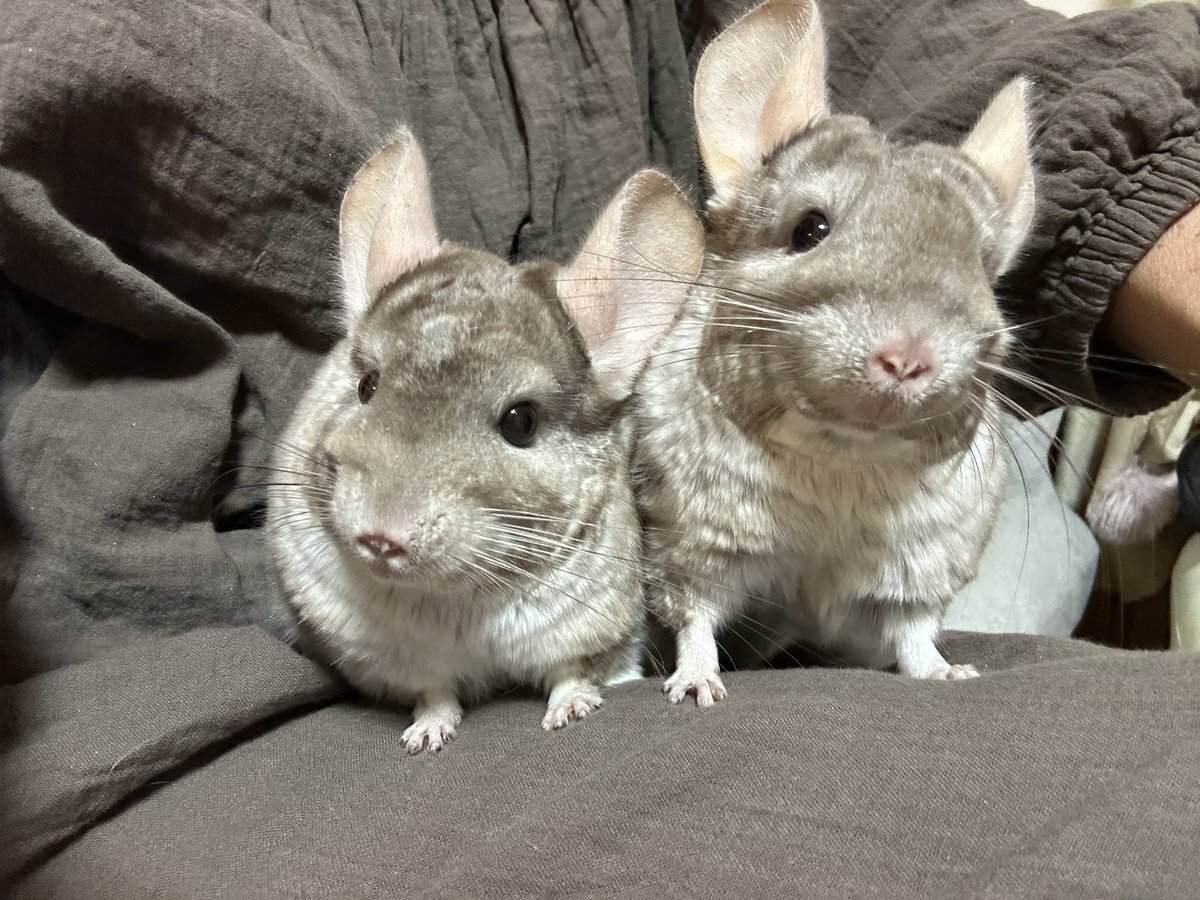 おはようございます☔️ あずきが太ったら うり二つのツインズ🐭🐭 パッと見て 分からないです🙄 #チンチラ #chinchilla #あずき #なつめ pic.x.com/gPSJLRXEsi
