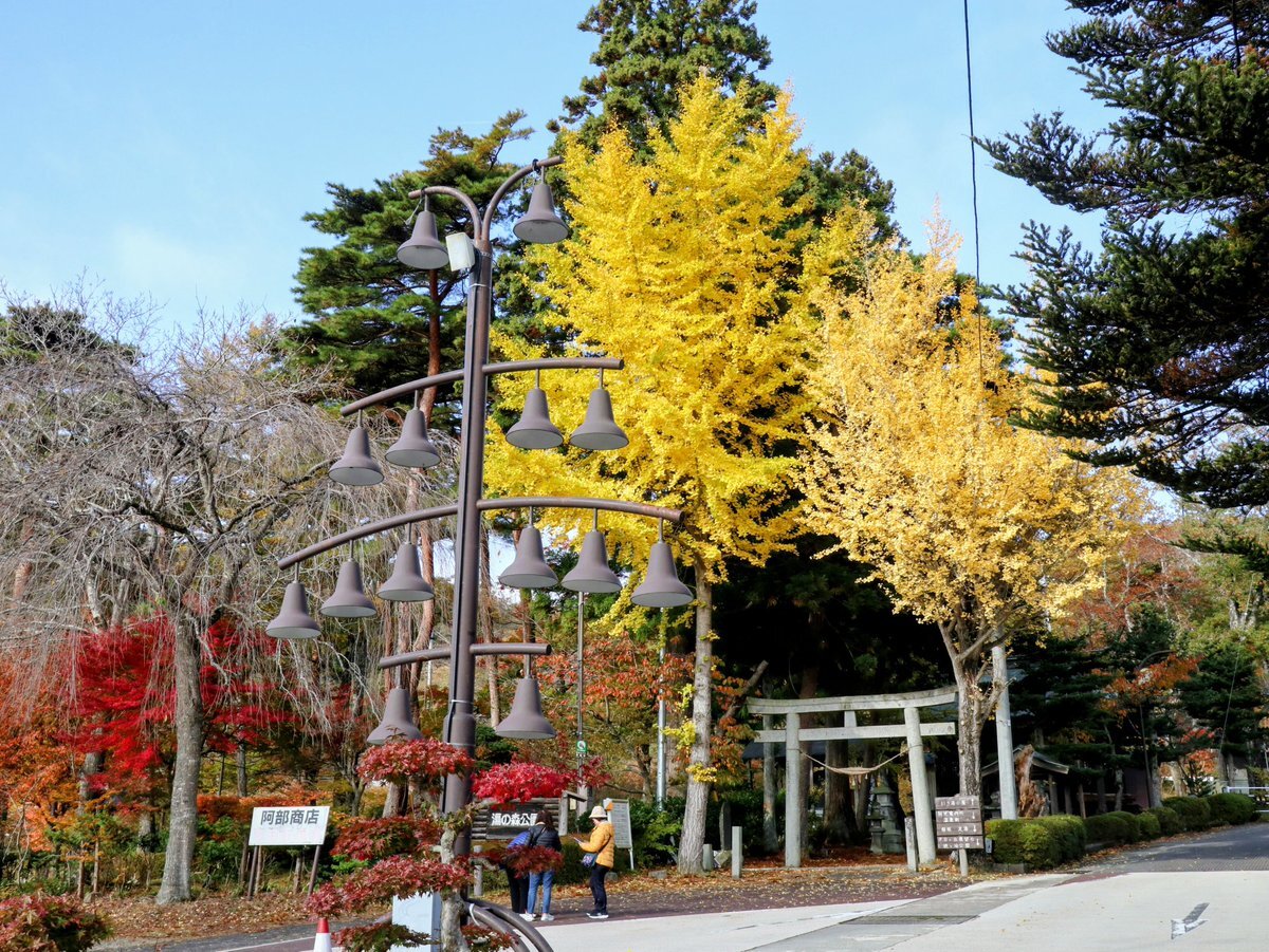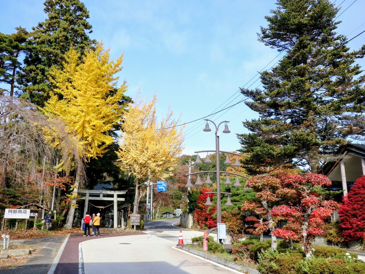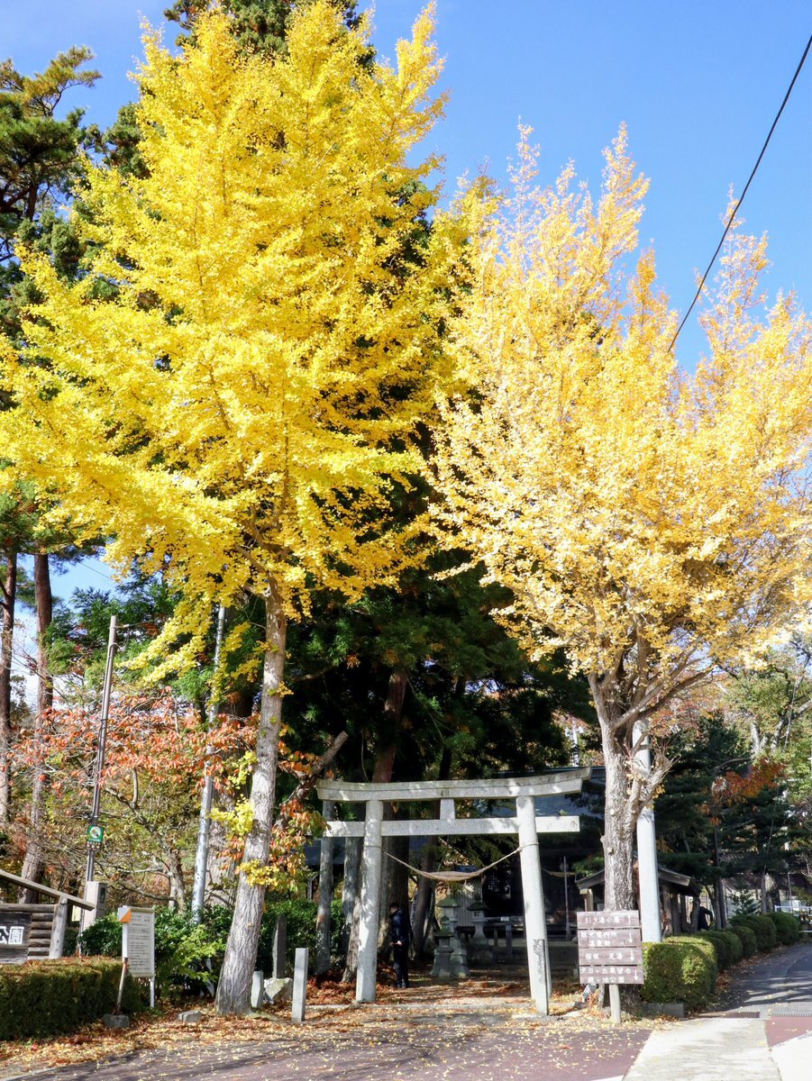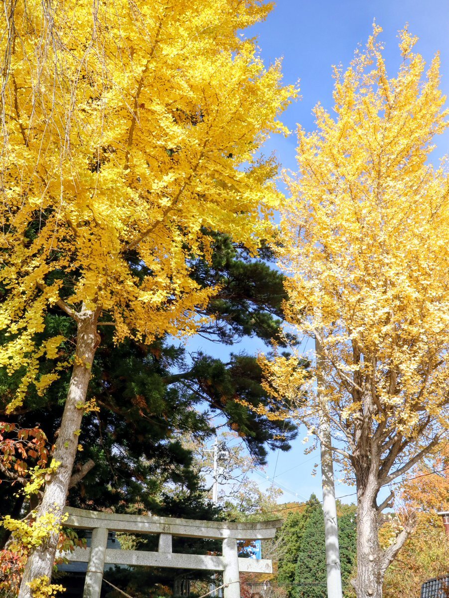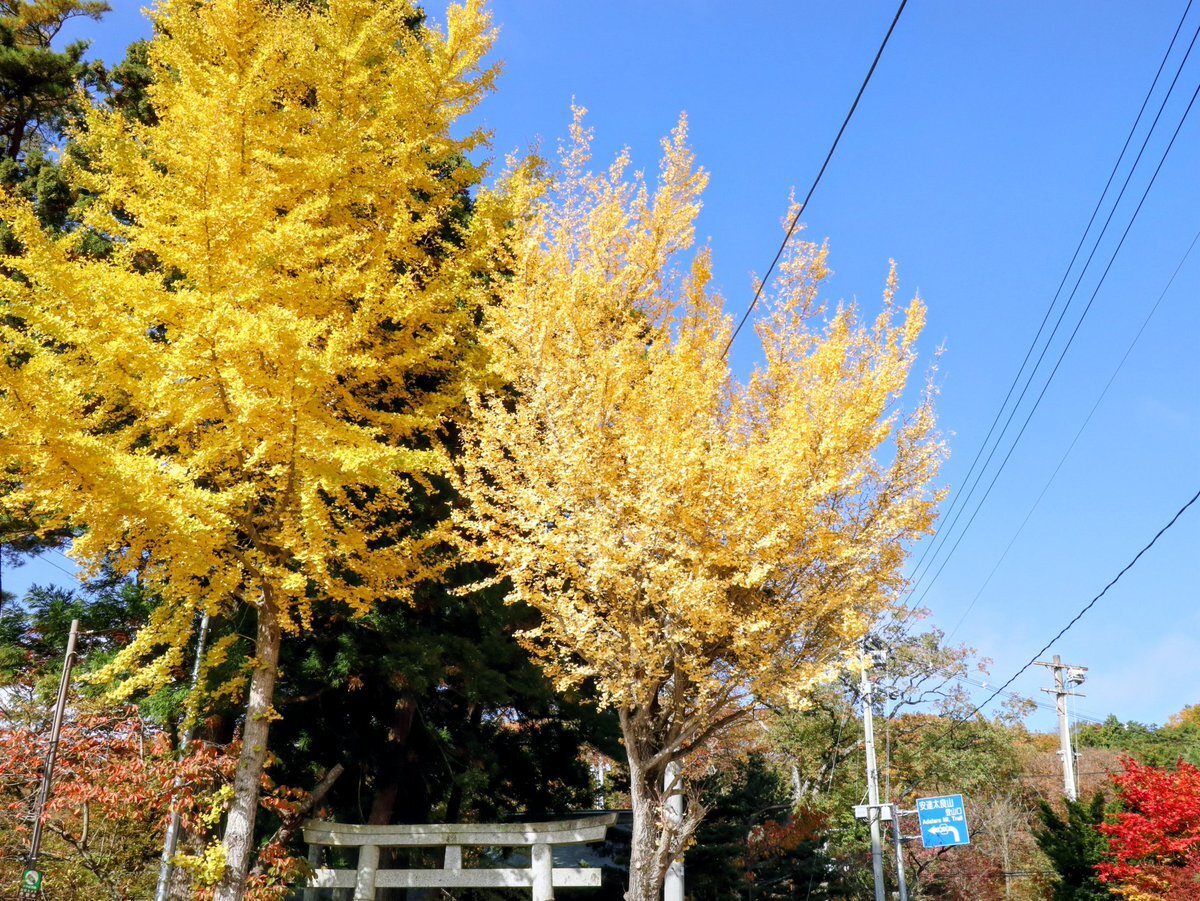 おはようございます 気温10℃ 綺麗な青空が広がる朝です 温泉神社のいちょうが美しいです… #あだたらの宿扇や #岳温泉の風景 #空ネット