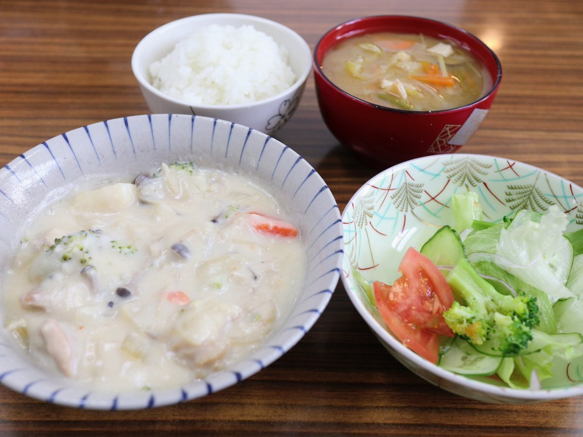 賄いお昼ごはんは… *クリームシチュー *生野菜サラダ #あだたらの宿扇や #扇やの日常 #扇やの賄い pic.x.com/r3LUhESksR