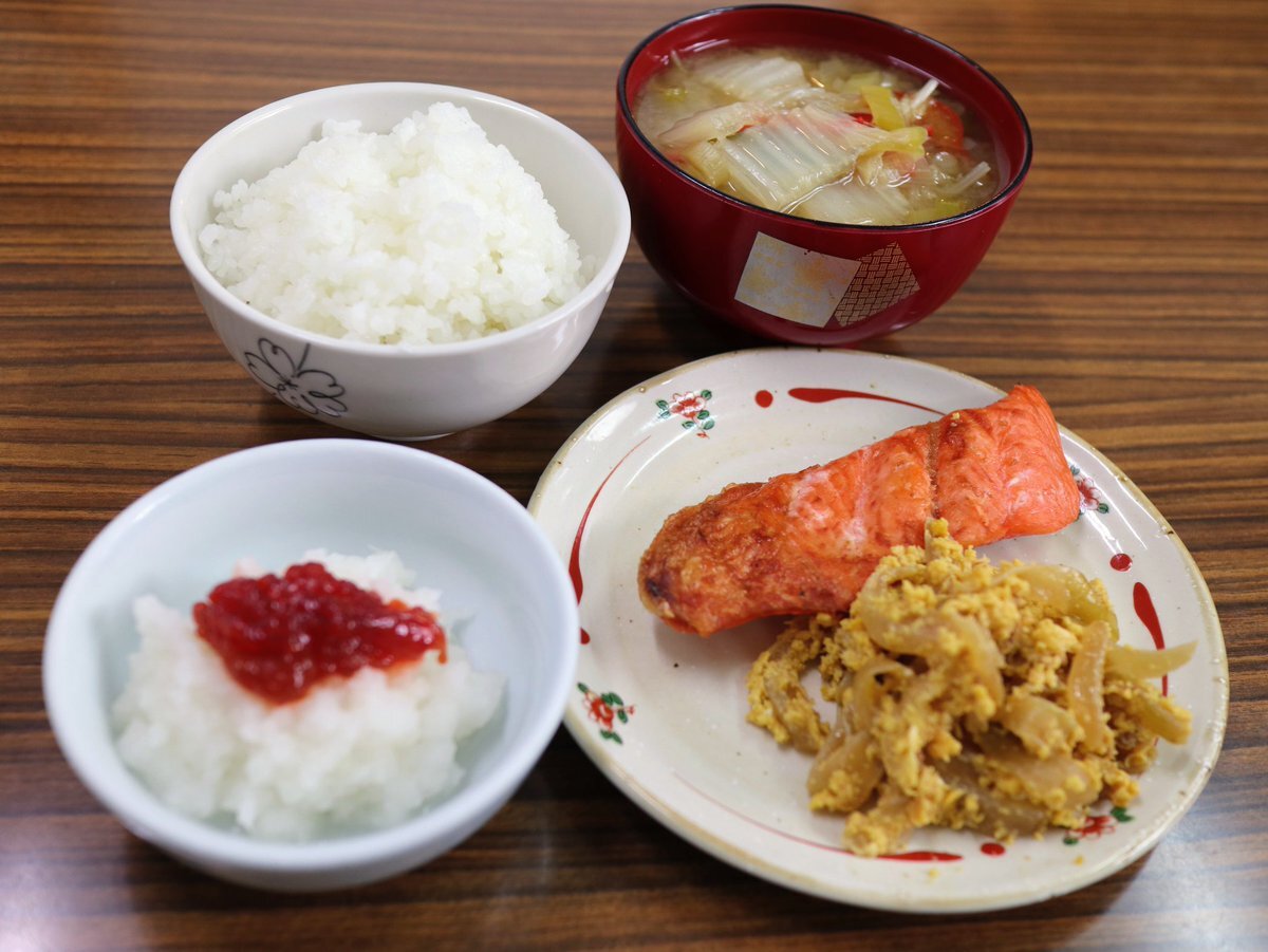 賄いお昼ごはんは… *焼き鮭&玉ねぎと玉子の炒め物 *筋子おろし #あだたらの宿扇や #扇やの日常 #扇やの賄い pic.x.com/s36Hw1vxou