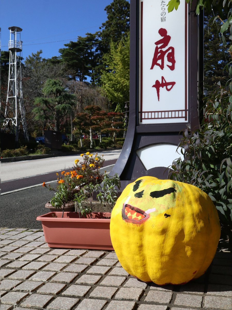 黄色いかぼちゃ、青空によく映えます 中の人、午後は中にはおりません 本日の業務、終了しました お疲れさまでした…🚗💨 #あだたらの宿扇や #扇やの日常 pic.x.com/BX0DEYbut5