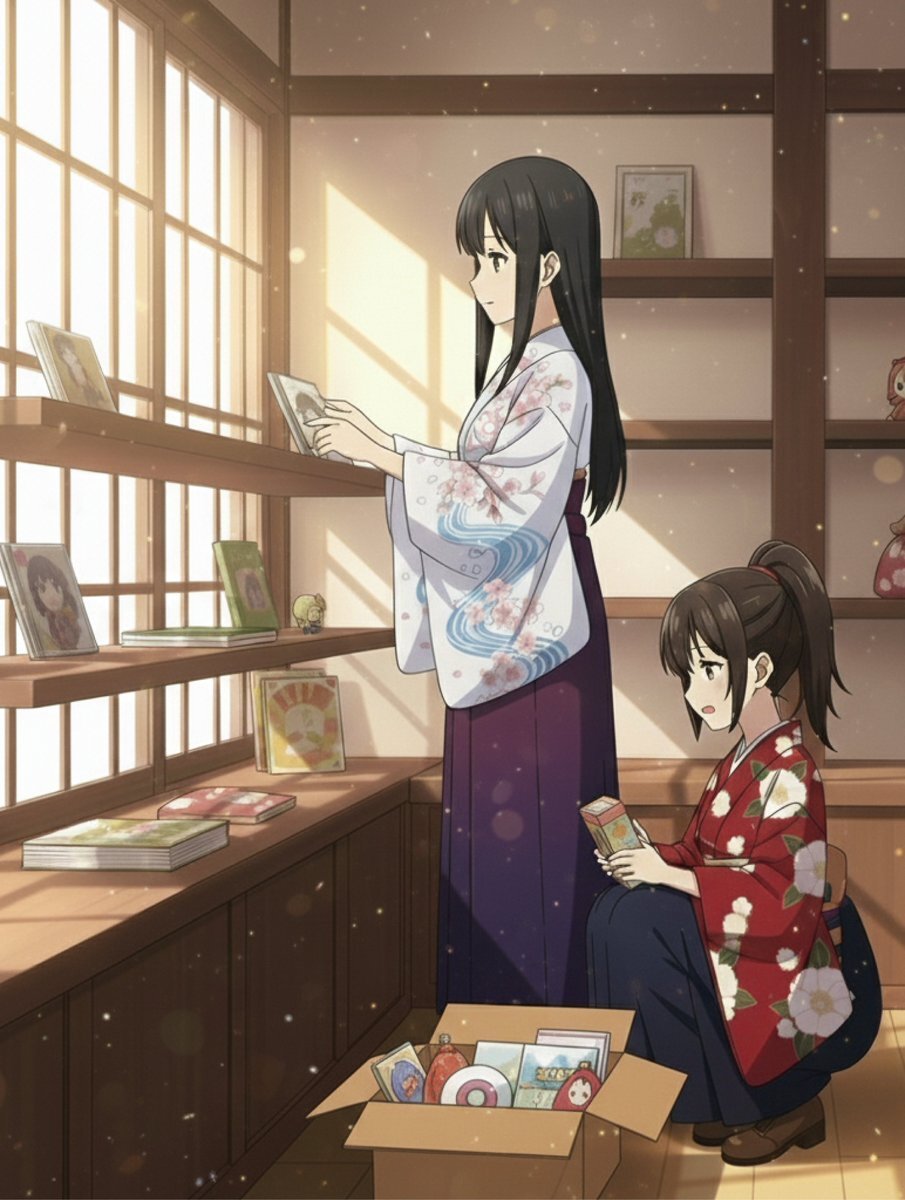 【きおく堂開店カウントダウン!#006】 えーい! ポスター貼り、完了っ! …あれ、お姉ちゃん、どうしたの? えっ、曲がってる!? ホントだーっ! #きおく堂 #開店準備 #カウントダウン #あと1日 pic.x.com/7Wo7gLFR8r