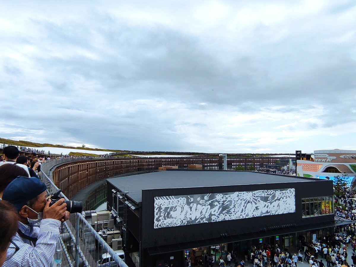 #関西万博 #あと1日 大混雑 予約も無いし100分列んで当日予約機(3分使用)を使えたけど空き予約無し!😱無駄な時間!! 元々パビリオンは諦めてたけど最後の希望だった 折角なので記念に 大屋根リング(上段外側)1周☝️ つ…疲れた~ 内側は平坦だけど外(上)側はUP·DOWN有るので足に来た 🌇早々5時前に撤退 pic.x.com/UVB1ZGUyEU