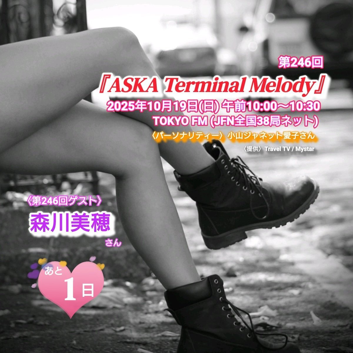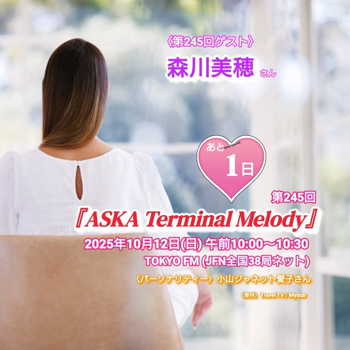 #あと1日】 第246回 2025.10.19(日)午前10:00~10:30 『#ASKA_Terminal_Melody#TOKYOFM (JFN全国38局ネット) #小山ジャネット愛子 tfm.co.jp/terminal/ 明日のゲストも #森川美穂 さん youtube.com/@morikawamiho?… #ASKA 出演 『#氣志團万博2025』 2025年11月15日(土) チケット発売中 pic.x.com/HxmrhaZev9