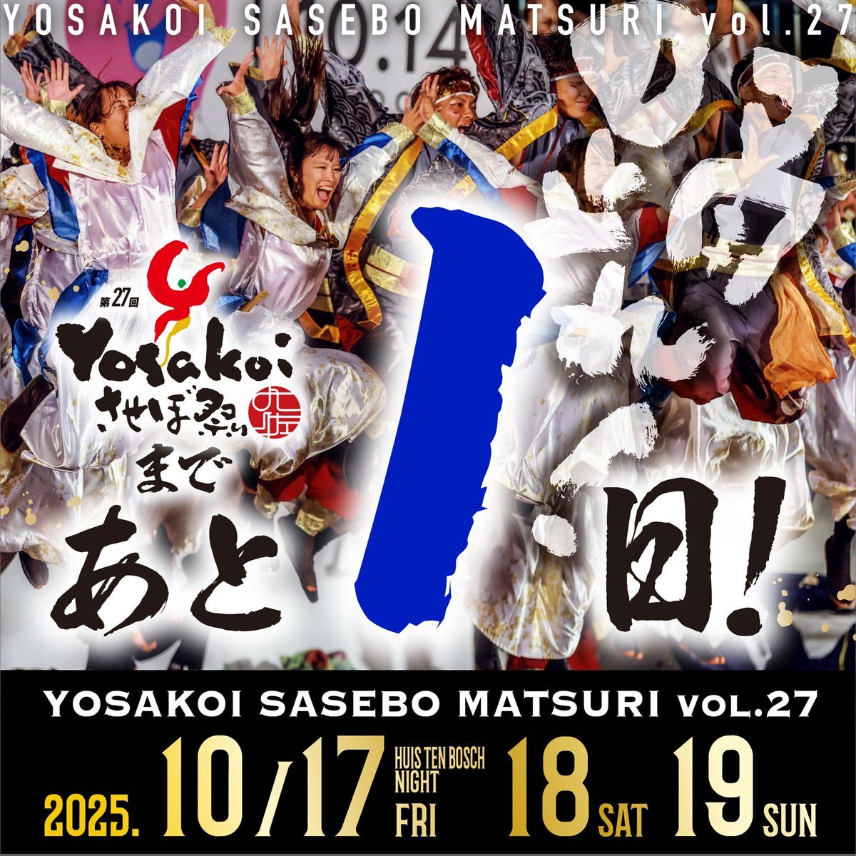 【第27回YOSAKOIさせぼ祭りまであと1日!!!】 迫力ある大人数の醍醐味を体感せよ!! 今年で4回目となる100バトルステージには過去最多の11チームがエントリー✨ 今年は大賞受賞演舞もあるよ! #第27回YOSAKOIさせぼ祭り #100バトルステージ #漲る #あと1日 pic.x.com/EaQV6gIALv