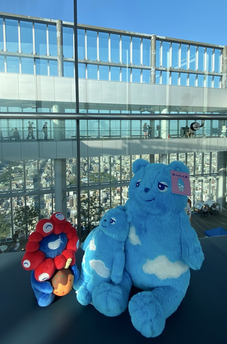今日のあべのハルカス展望台。 14時はハロウィンコスでしたが、15時はスタッフさん制服姿。 パインアメの大袋を握りしめピース。 手渡しでパインアメ頂きました。 平日のサプライズ的お散歩ありがとう。 #あべのハルカス #ハルカス300 #あべのべあ pic.x.com/wOhul0OHG7