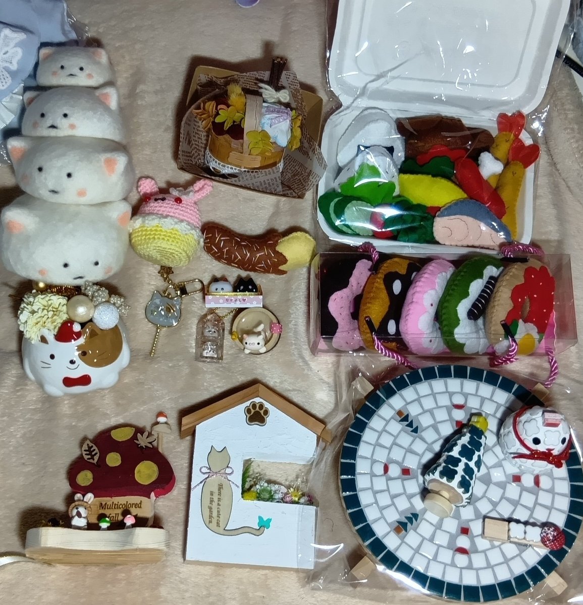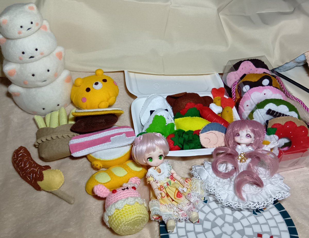 おはおはー! 肩こり痛い( ̄▽ ̄; 京都の梅小路手づくり市、ハンドメイドマルシェ、倉敷のドールズサンクチュアリ、と回って入手したものたち。 ねこばっかり増えてく なーんでかなー( ̄▽ ̄) #おはドル #あまむす pic.x.com/ozVf3Ps9tH