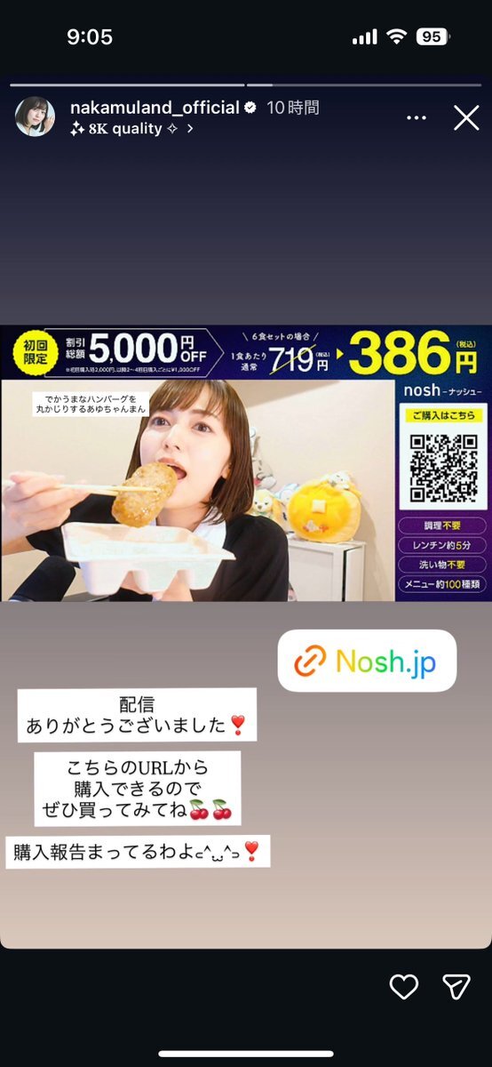 あゆさんが食べてると美味しく見えるマジックでナを初注文😋🍖🐟 今週末届くみたいなので食べるのがめちゃ楽しみ✨ #中村歩加 #あゆたろう instagram.com/stories/nakamu… pic.x.com/xXDMILWyz7