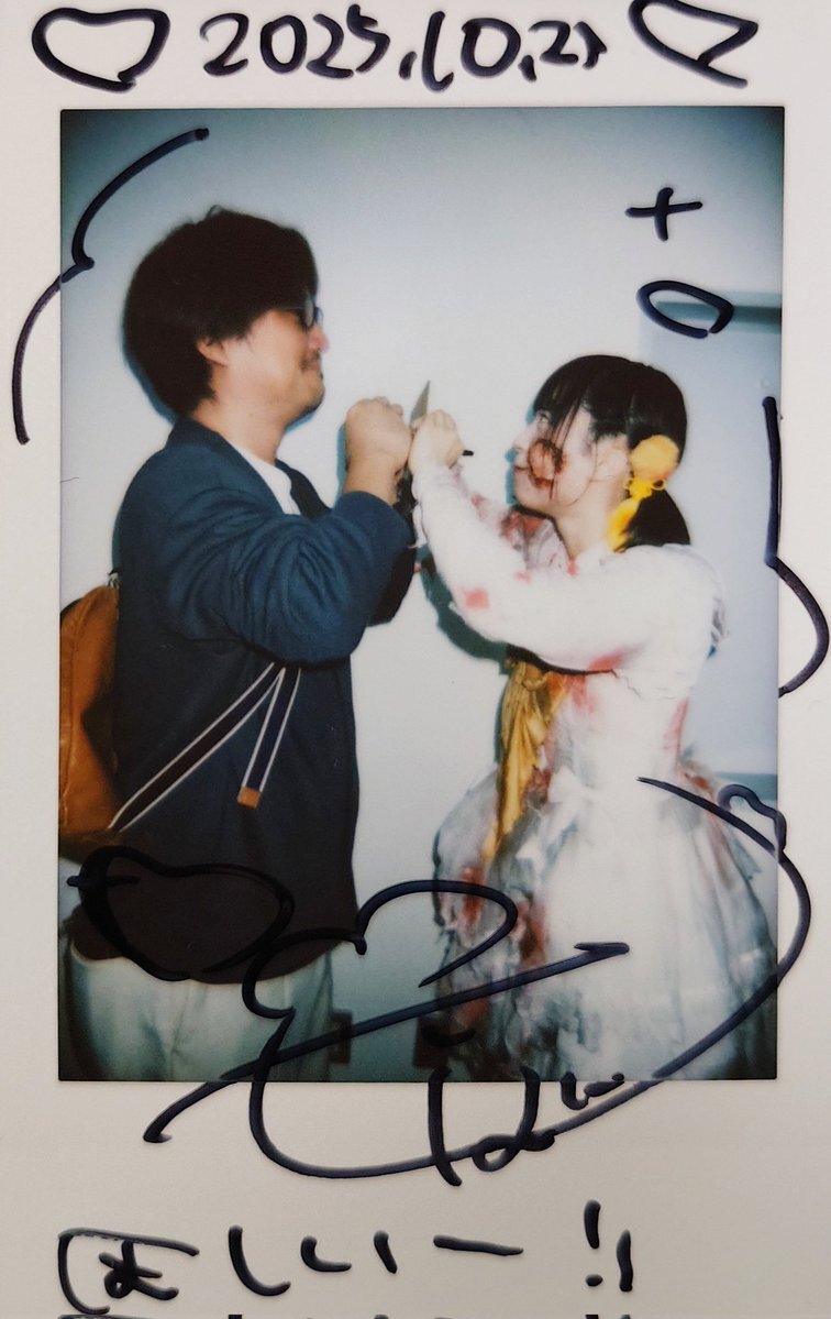 2025.10.25 ハロウィンチェキ会 まなてぃ❤️ このまなてぃ投稿の回答で、噛みついていいよって差し出しました😆 ちゃんとこの投稿の回答ってわかってくれてた😊 最近、プライベート情報を公開したら、どうやらまなてぃパパと同い年らしく… しかも雰囲気似てるらしい笑 #あんこ #あんこーるまなてぃ pic.x.com/P7hrY6jKY1 x.com/mana_encore/st…