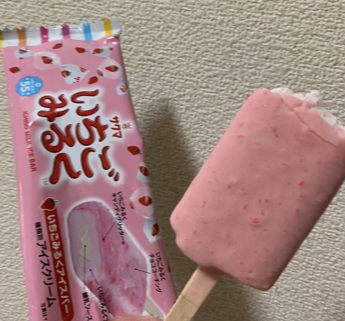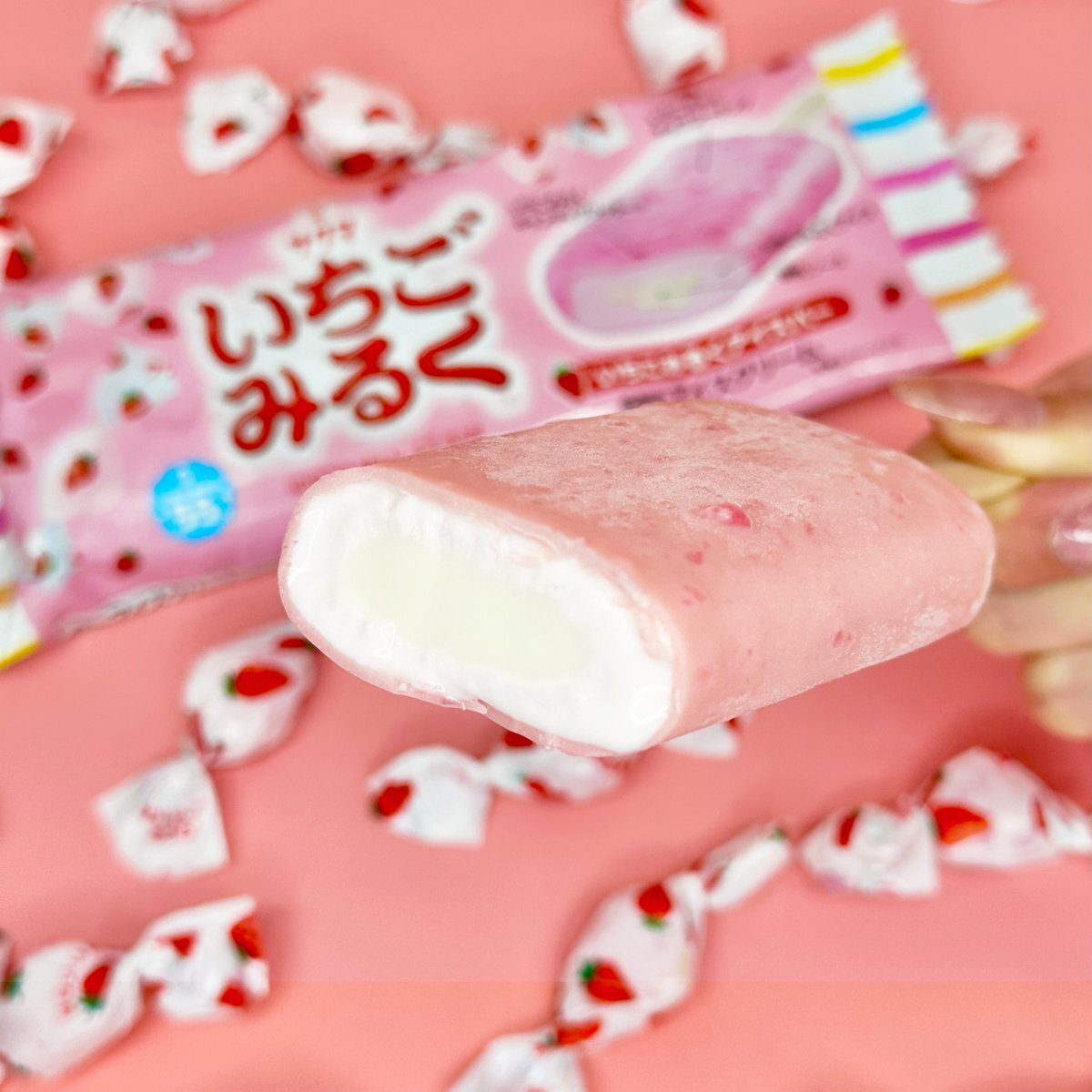 こんなアイス🍓🍬を見つけたら見逃すわけにはいかないよね⁉️そりゃ、当然美味しいですよ😋こんな時間に食べちゃった罪悪感に勝る美味しさ。 #いちごみるく #いちごみるくアイスバー pic.x.com/QfTpSDyvrU