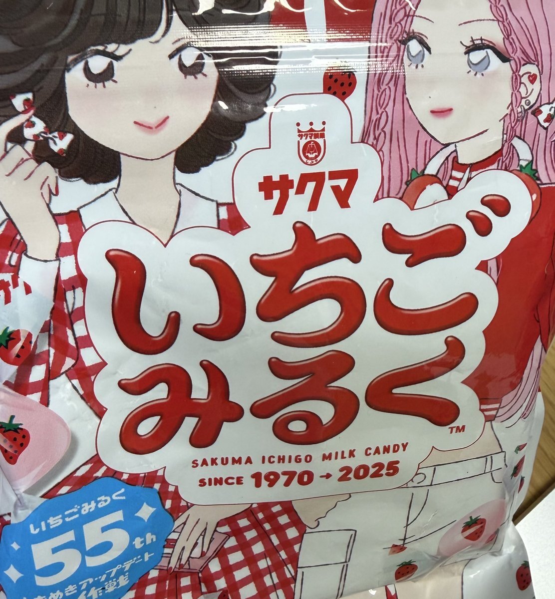 #いちごみるく 55周年おめでとうございます🍓🍬 いちごみるくは子供の頃を思い出す味です👧🏻 子供会でもらうお菓子の中に入ってたなぁ🍓🍬 舐めてると途中で飴に穴が空いて、そこが気になって舌で触っちゃう🤣 x.com/decotojp/statu…