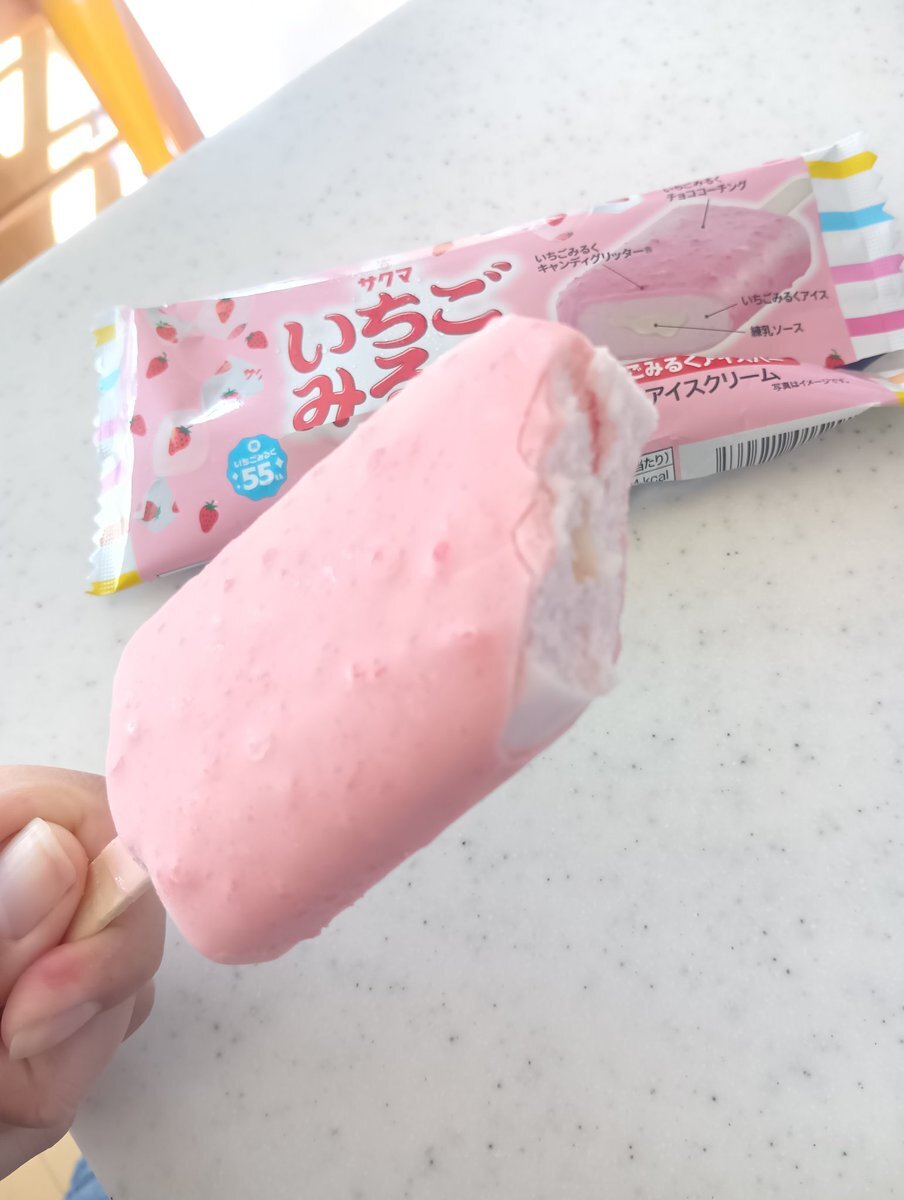 油断した…😫 どうせ、っぽい味ぐらいなんでしょ と思ってひとかじり😳 っぽいじゃなくて、そのまんまでした😋 ※あくまで個人の感想です🤣 普段ね、飴舐めないんですけど、なんか懐かしくなって、いちごみるく買おうかな😆 #サクマ #いちごみるく #いちごみるくアイスバー pic.x.com/wOWloLNRdB